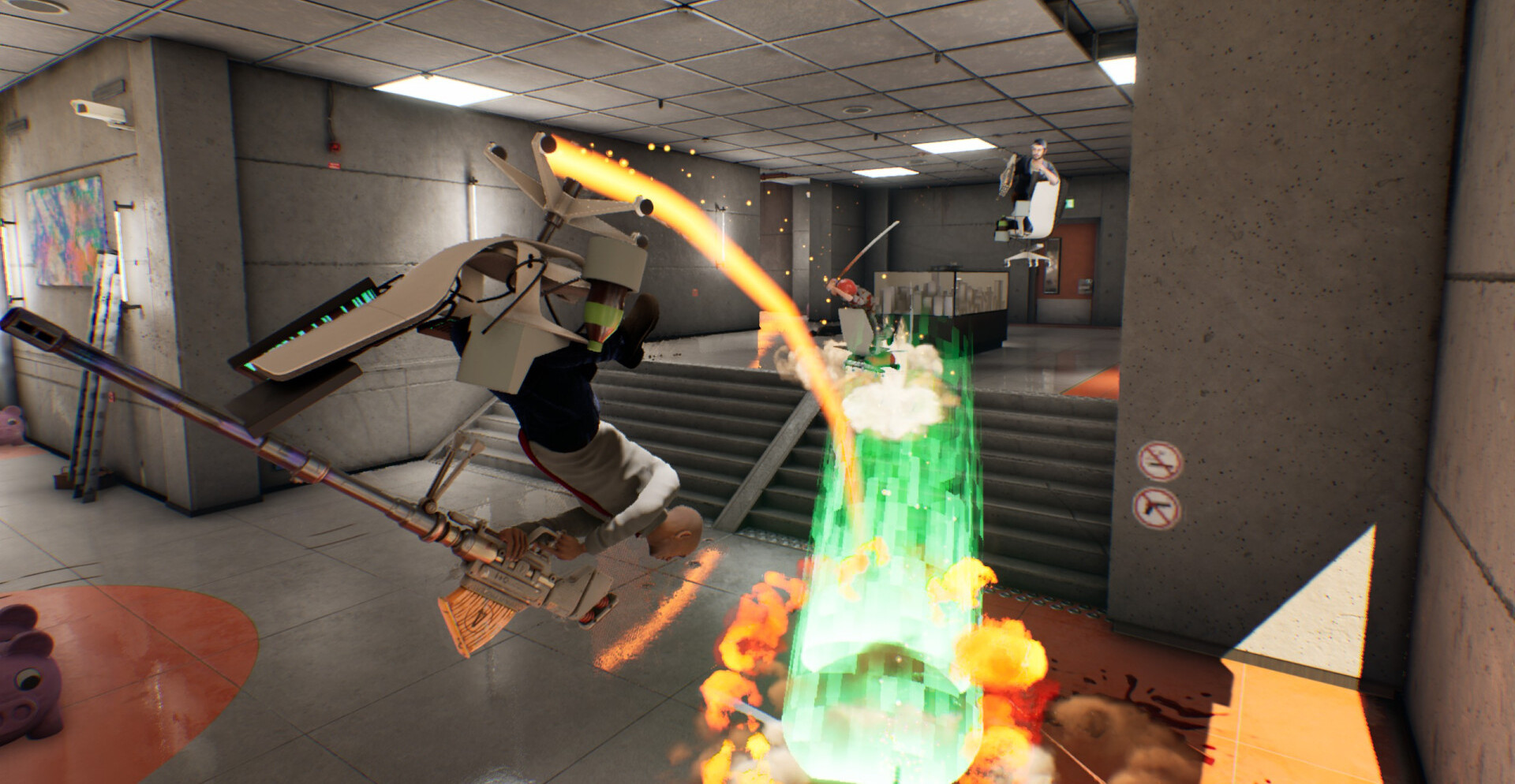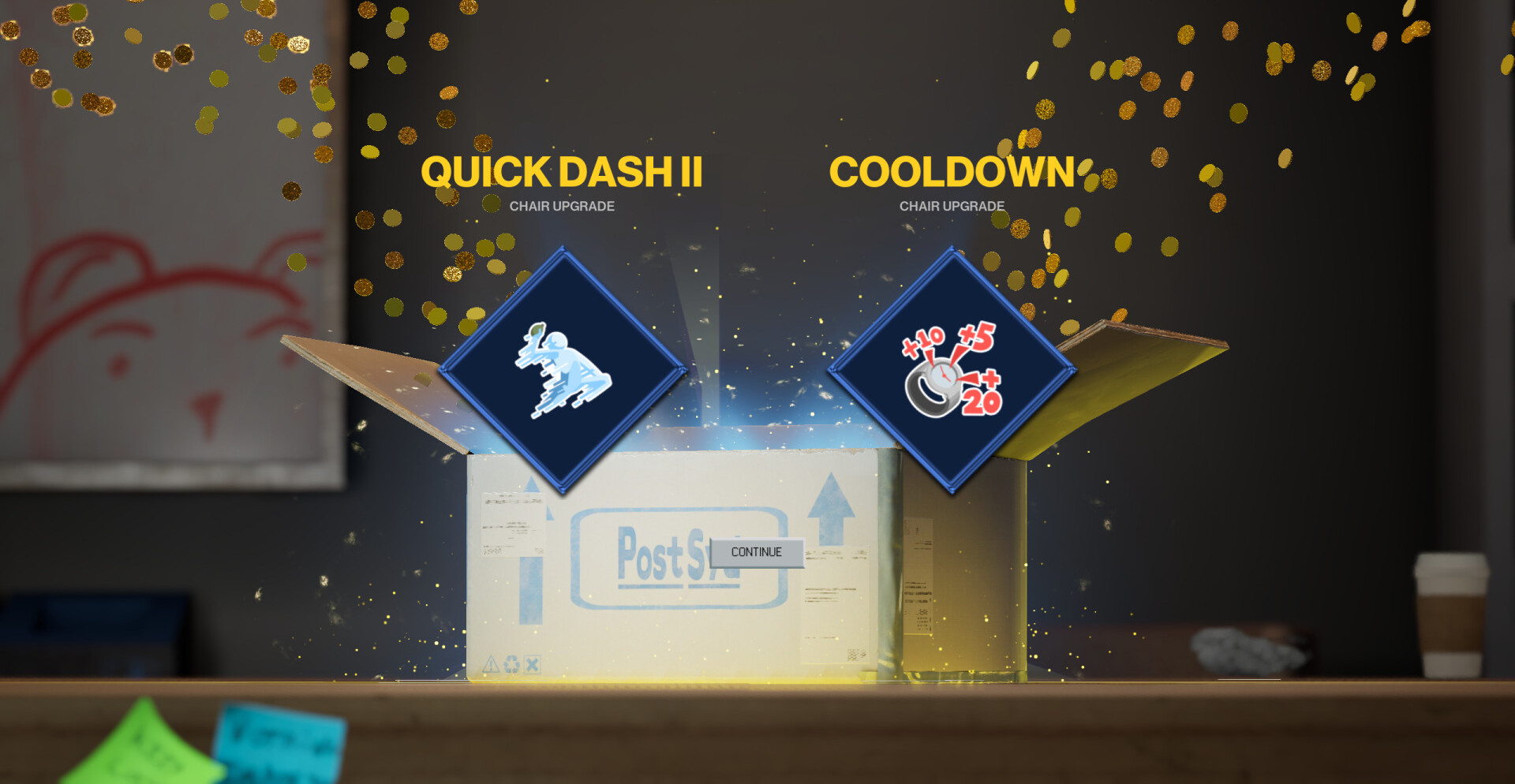 - Режим с гонками по офису на стульях