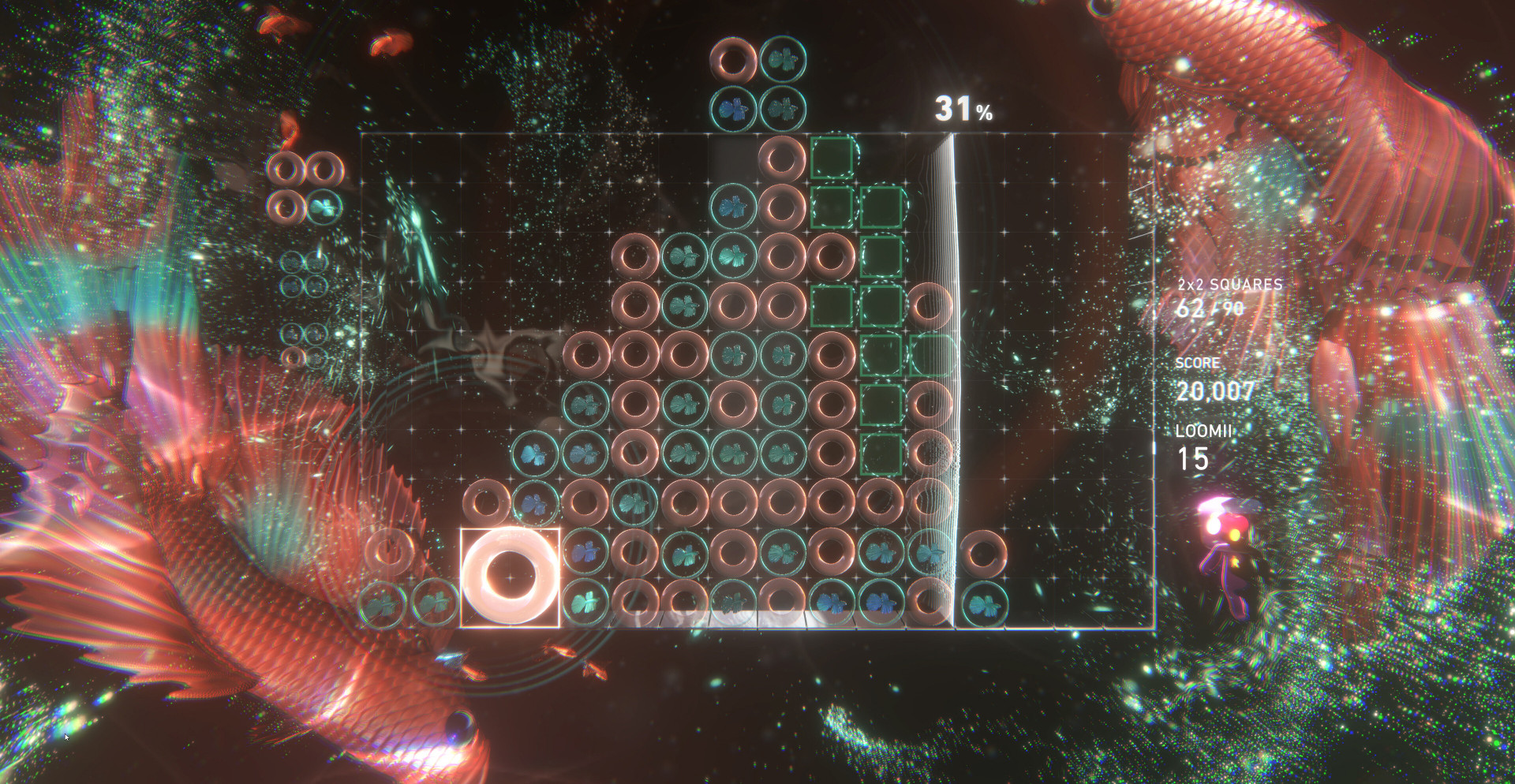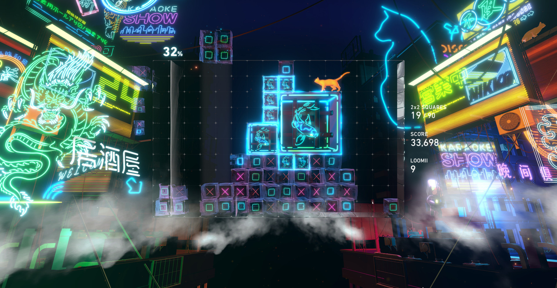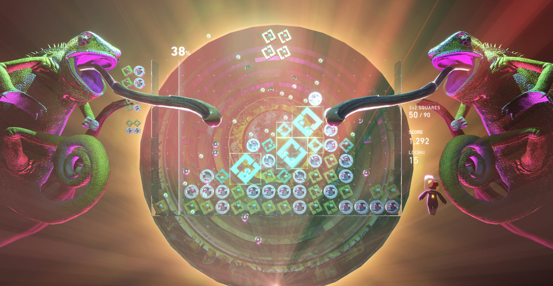 Lumines Arise — это стратегическая головоломка, где пространство подчинено звуку. Игровая механика строится на взаимодействии света, формы и ритма. Игрок контролирует падающие фигуры, подстраивая их под музыкальный поток. Всё подчинено одной идее — точному совпадению действия и звука. Любой ход влияет на мелодию, превращая игру в математический танец.