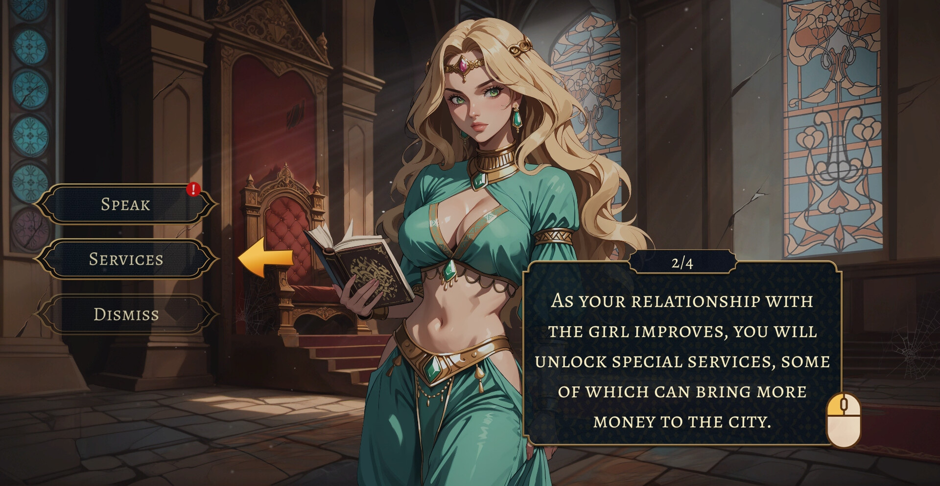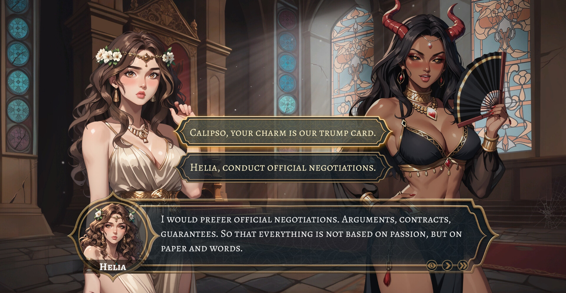 Каждое решение становится актом соблазна: выбирай союзниц, открывай их тайные мотивы и управляй их сердцами, словно королевством. Селина остаётся верной, но другие преследуют собственные цели. Между интригами и похотью рождается власть — мягкая, как шёлк, и опасная, как клинок под подушкой.