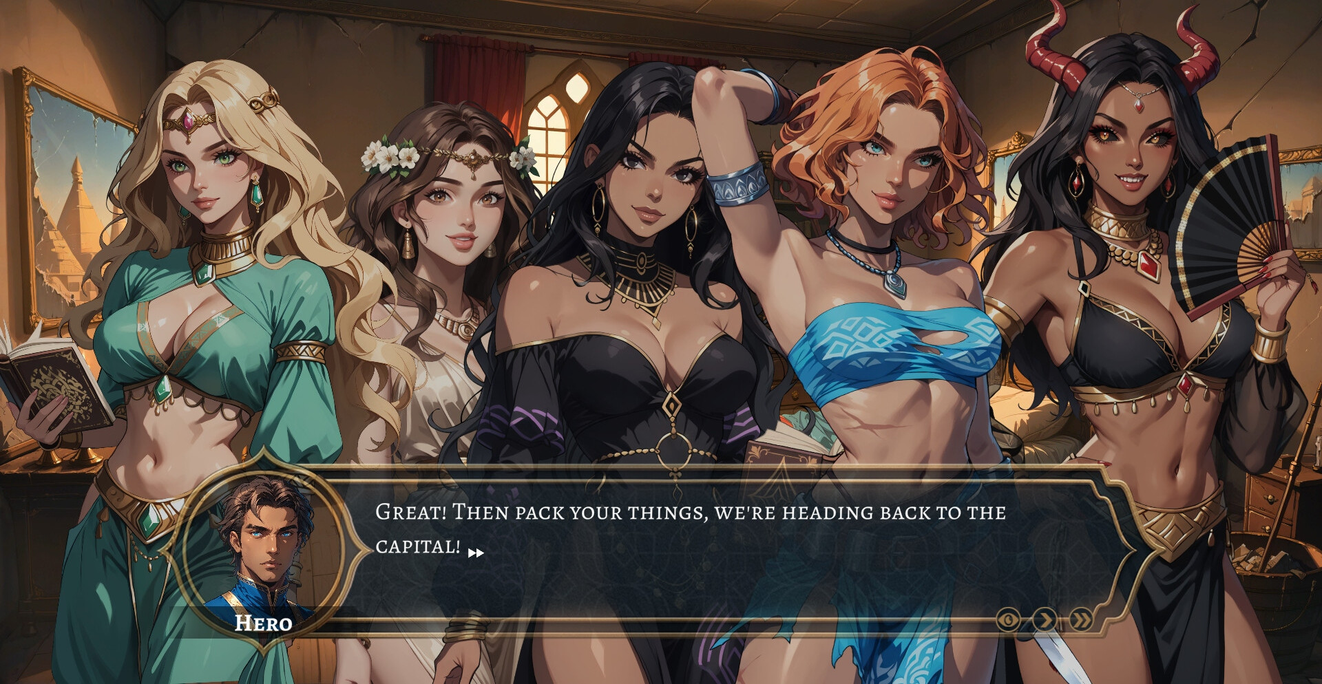 LUST HAREM: 1001 Pleasures — это эротическая визуальная новелла о падении и соблазне власти. Герой, опозоренный во время коронации, оказывается в изгнании среди руин провинции. В роскошном особняке, полном тайн и воспоминаний, его ждут женщины, чьи желания могут подарить спасение или погубить окончательно.