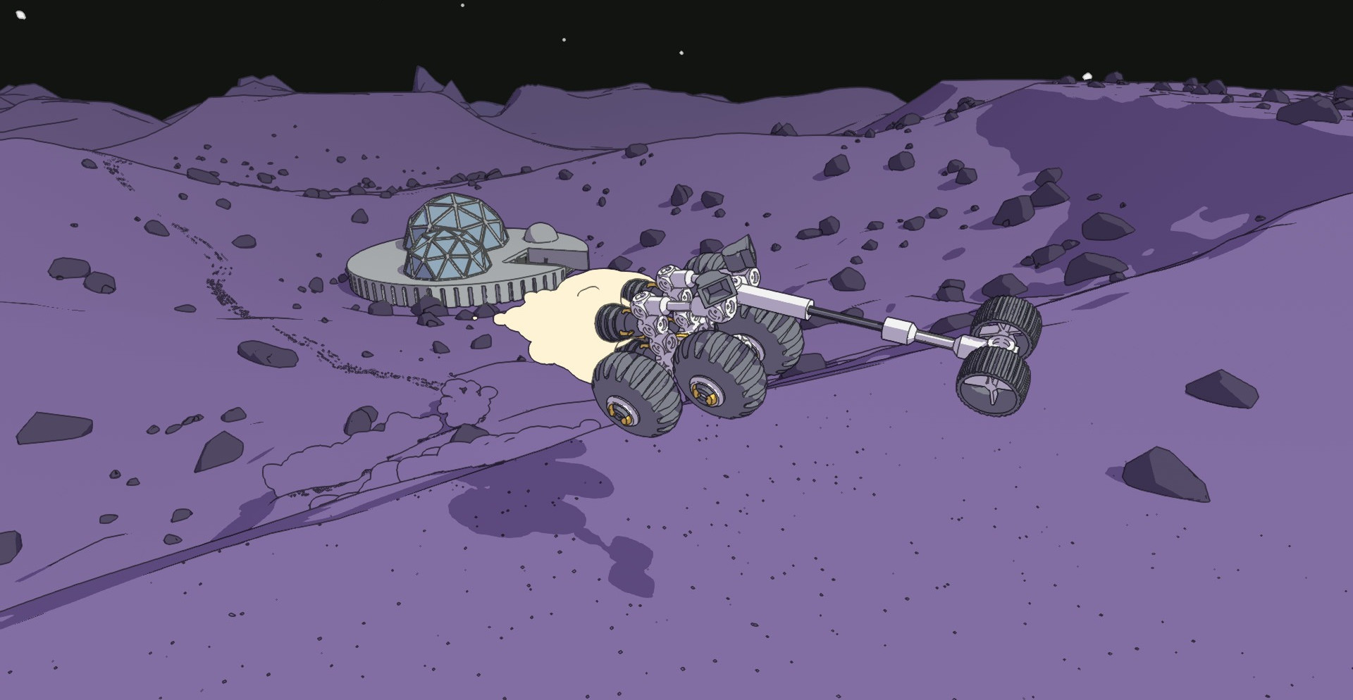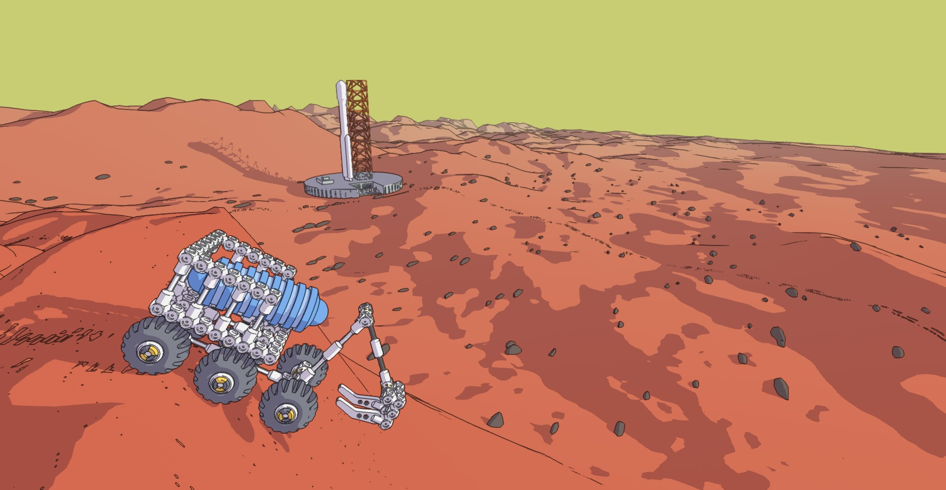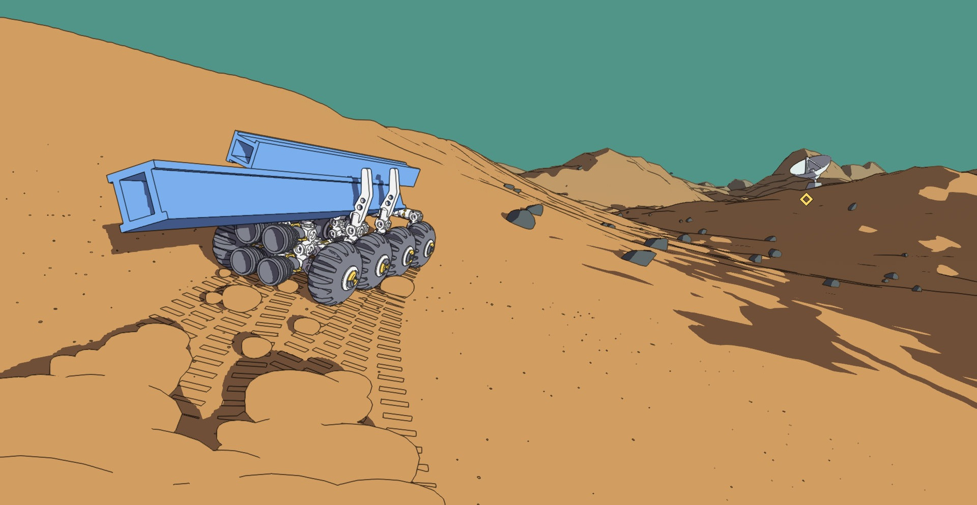 После создания наступает второй этап – изучение планеты. Водите технику по поверхности Марса, собирайте образцы грунта, сражаясь с агрессивными погодными условиями и доставляйте груз на место назначения.