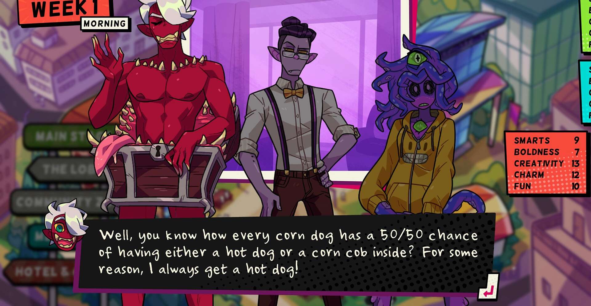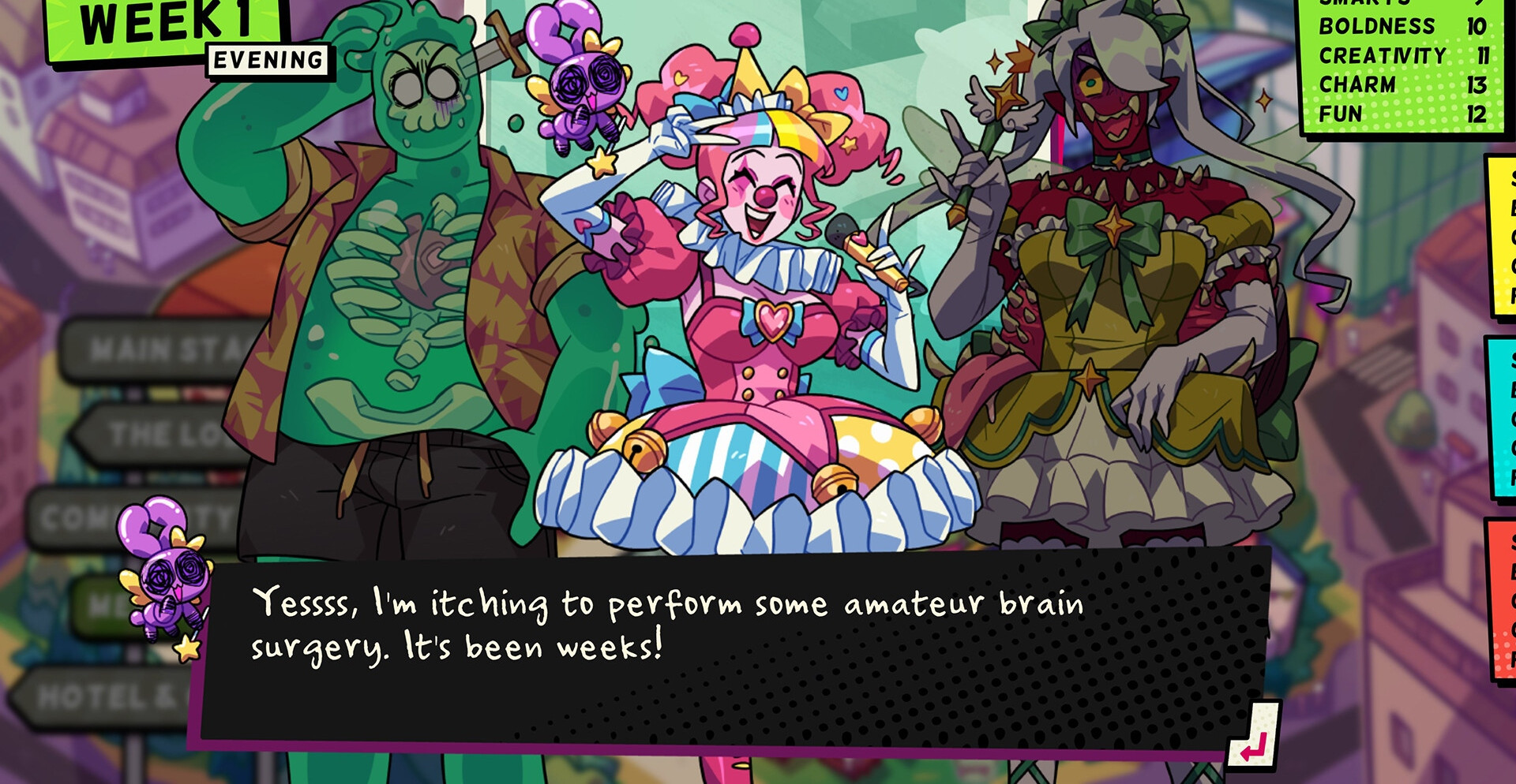 Кто больше подойдет для романа? Мимик, предпочитающий косплей? Необычный идол-клоун? Или же страшная милашка? Ах, да! Есть же еще Лиам… При этом стоит понимать, что здесь у вас будет ограниченное количество времени, чтобы завести знакомства с сексуальными монстрами.