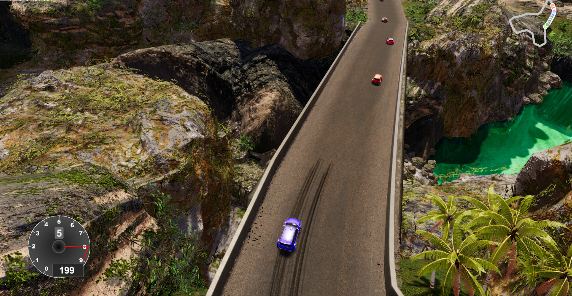 Трассы наполнены чередованием узких участков и резких изгибов, требующих постоянной корректировки траектории. Машина реагирует мгновенно, позволяя играть на грани сцепления и скорости. Дрифт здесь — не украшение, а способ сохранить темп и выйти из поворота быстрее соперников. Камера сверху подчёркивает геометрию маршрута, превращая каждый круг в задачу на точность и концентрацию.