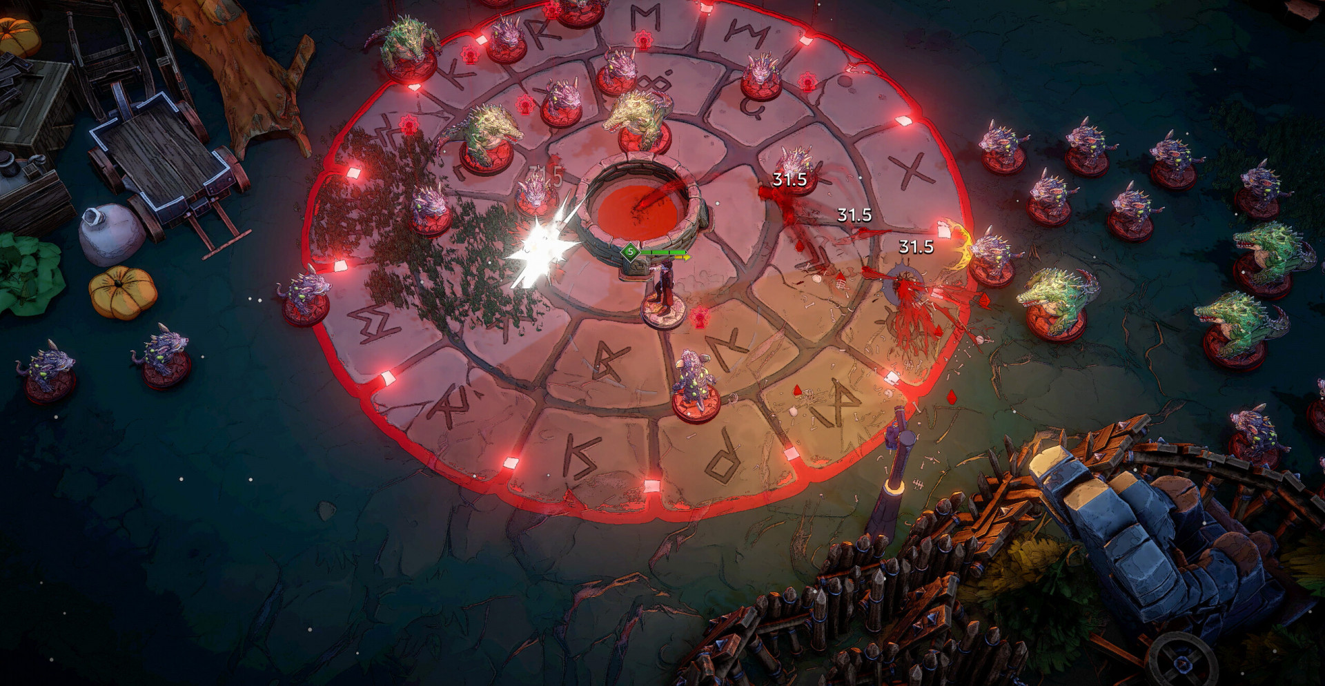 Силы проклятия породили бесконечные стаи, ревущие в лунном мраке. Сотни клыков, тысячи когтей — и одно сердце, бьющееся в ритме мести. Игрок погружается в ритуальную бойню, где враги обрушиваются волнами, а поле боя превращается в море искр, пепла и крови. Всё подчинено единственной цели — удержать власть в руках до рассвета.