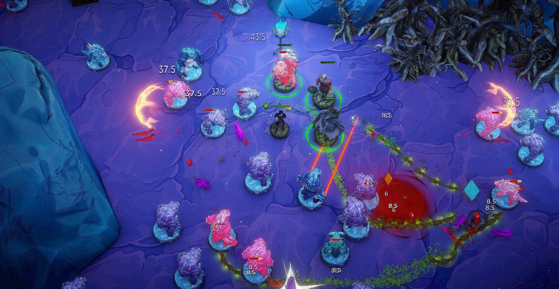 Бои в стиле bullet heaven с множеством визуальных эффектов.