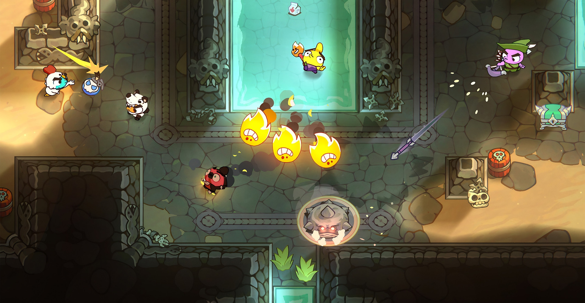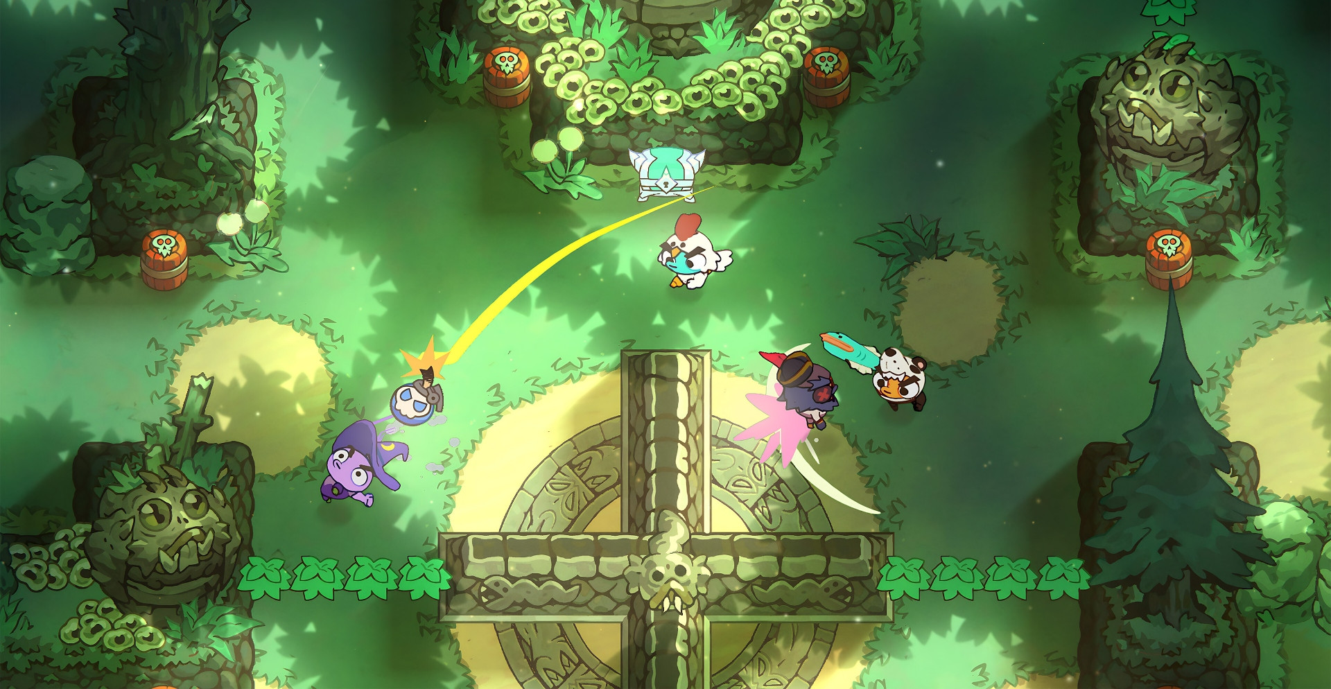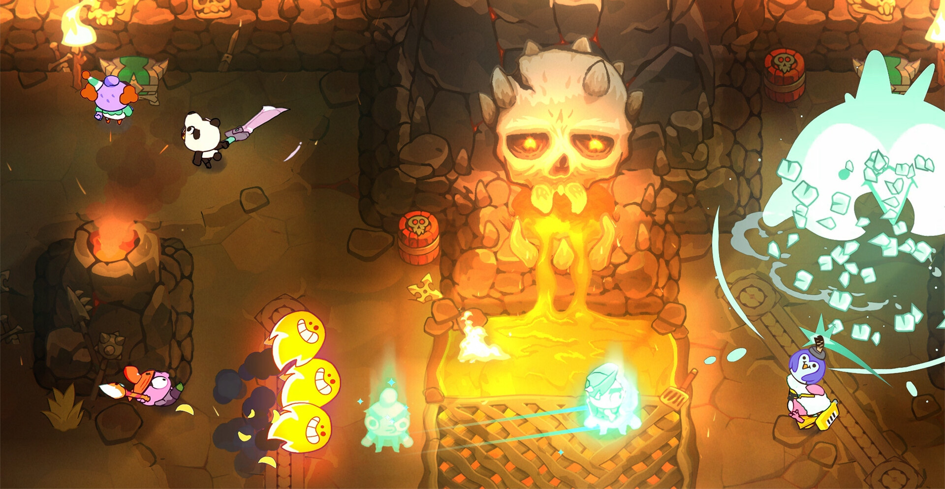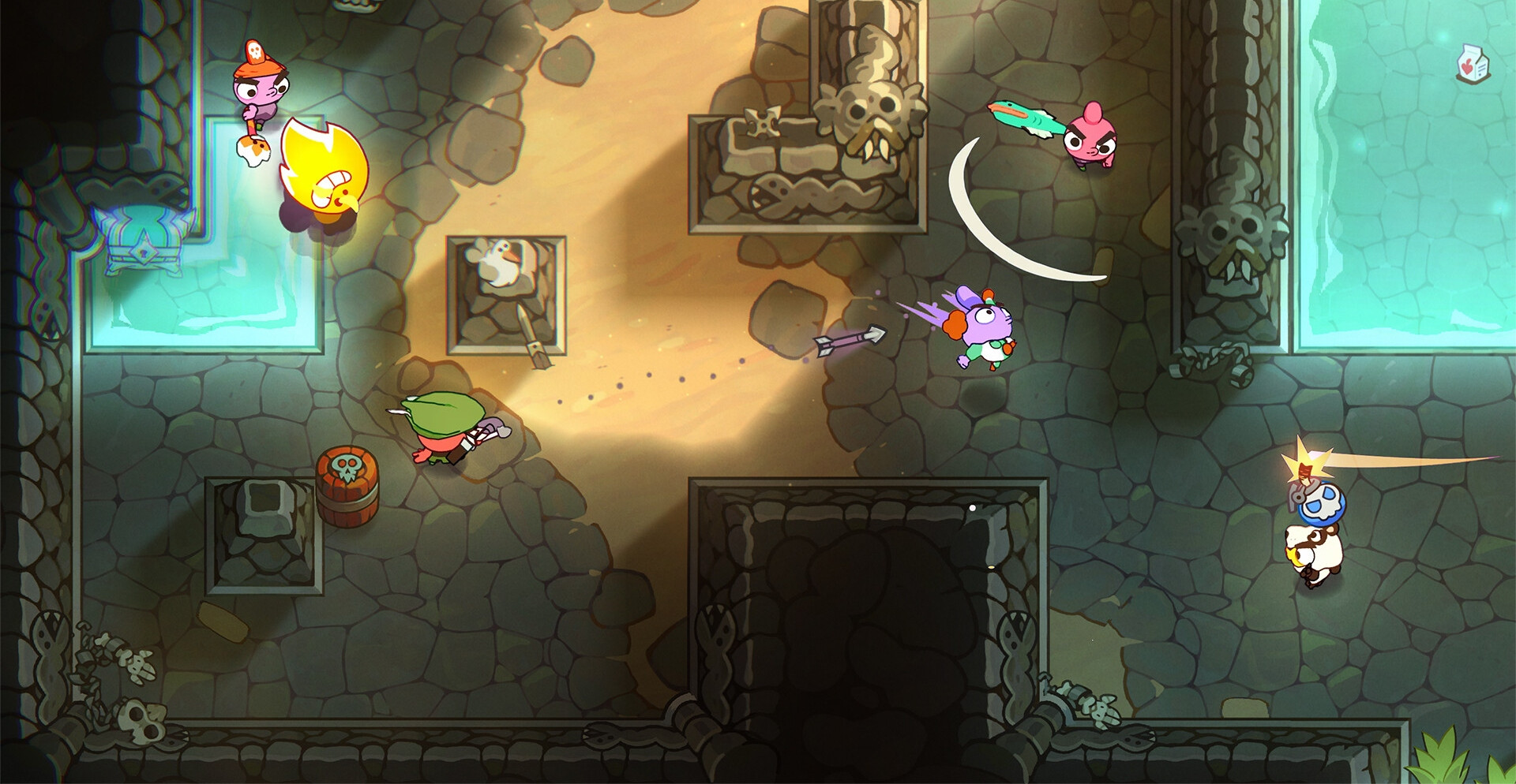 Соберите друзей или бросьте вызов случайным соперникам, чтобы сразиться на арене, где всё решает ваша реакция и умение адаптироваться к хаосу. Простые правила делают игру доступной, но истинная глубина геймплея раскрывается через систему прогресса в стиле Roguelite. Улучшайте свои способности, изучайте новые тактики и будьте готовы ко всему.