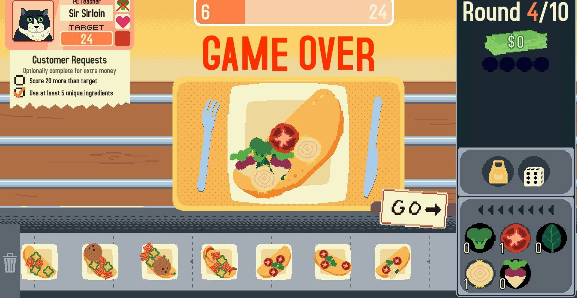 Omelet You Cook — это кулинарный рогалик, где вы готовите сумасшедшие блюда на бегу. Каждую секунду — новые заказы, новые условия и новые риски. Ваша задача — не просто выжить, а стать гением хаоса на кухне.