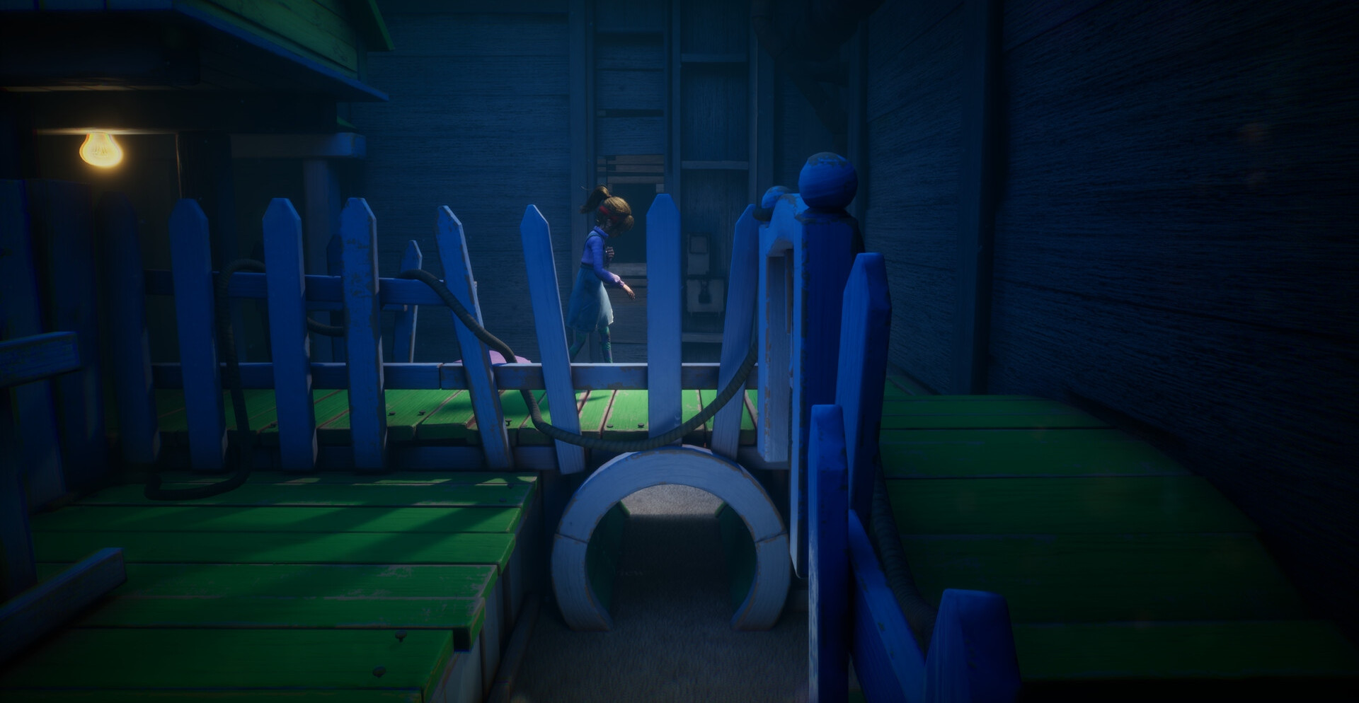 Исследуйте тёмные залы с помощью плюшевого медвежонка, который помогает ориентироваться в пространстве. Вам предстоит слышать, чувствовать и действовать интуитивно: скрип дверей, шаги вдалеке, дыхание за спиной — всё это подскажет, когда двигаться, а когда замирать.