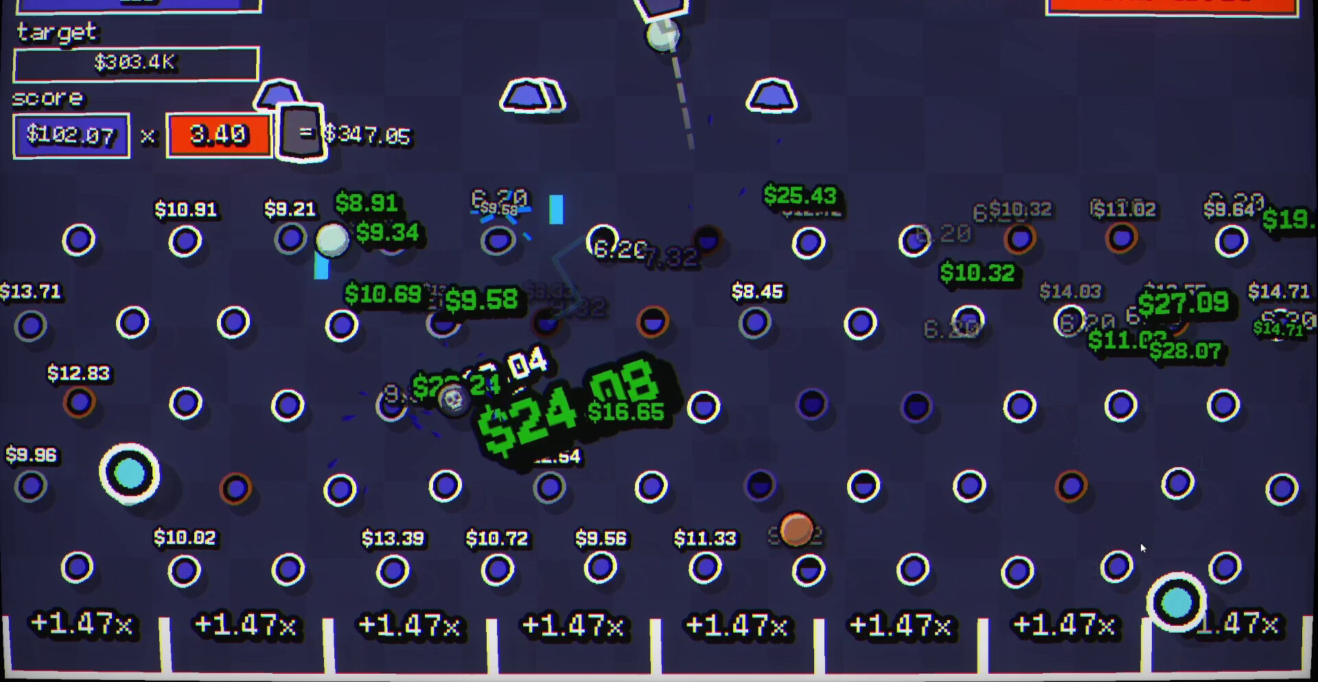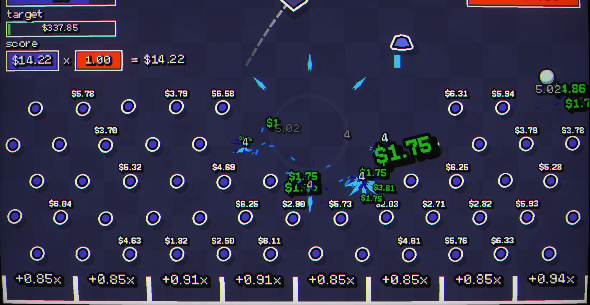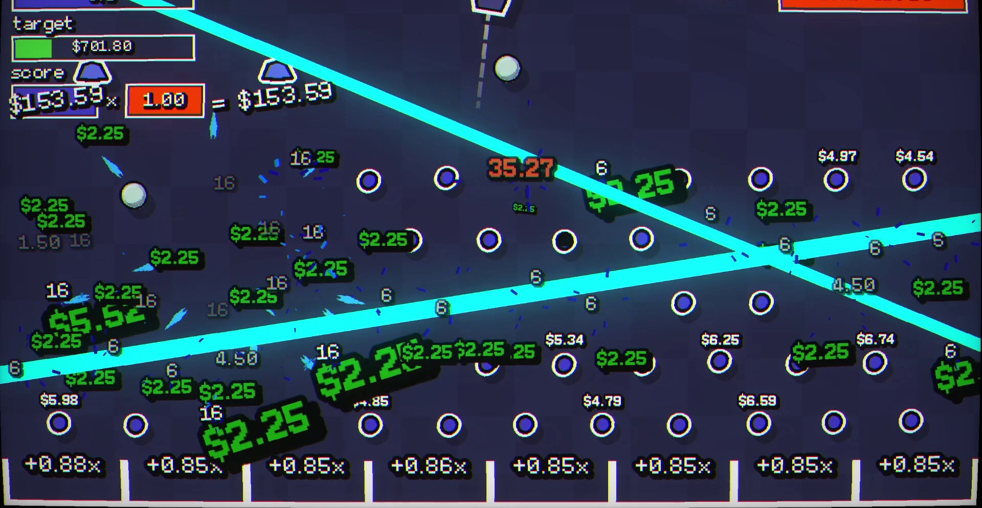 Поле постепенно заполняется эффектами, усиливающими взаимодействие между элементами. Удары становятся мощнее, падения быстрее, а поведение шаров — менее предсказуемым. Комбинации усиливают друг друга, создавая ситуации, где результат растёт лавинообразно и выходит далеко за пределы первоначальных значений.