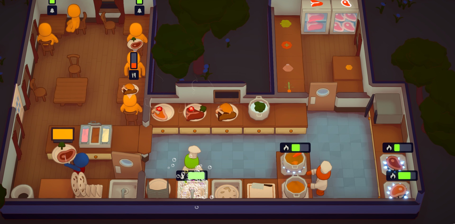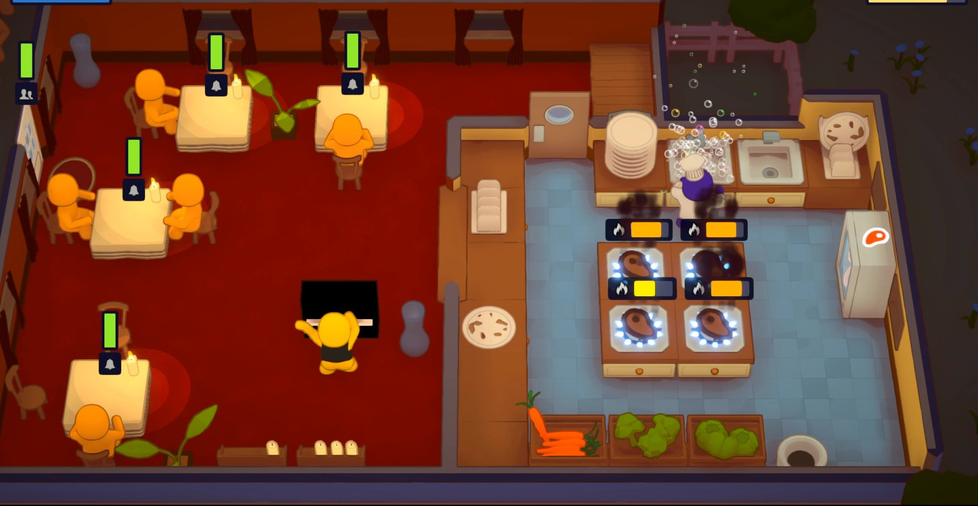PlateUp! – любопытное приключение, которое предлагает стать управляющим рестораном и постараться привести его к процветанию. Сразу стоит отметить, что этот симулятор управления имеет большую порцию юмора и неуклюжести. Поэтому вам будет довольно весело исследовать свои новые возможности и пытаться добиваться хорошего результата. В любом случае для начала мы рекомендуем вам скачать торрент PlateUp! на ПК, чтобы вы могли начать свое приключение и постараться продемонстрировать все свои навыки, знания и творческий подход. Стоит ли хорошо стараться в этом приключении? Обязательно, так как с прогрессом развития будут открываться довольно интересные варианты улучшения вашего ресторана.
