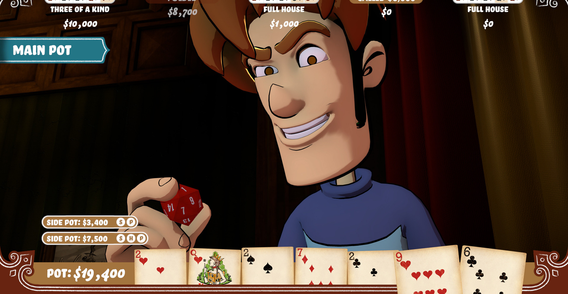 Безлимитный техасский холдем с акцентом на диалоги и характеры персонажей.