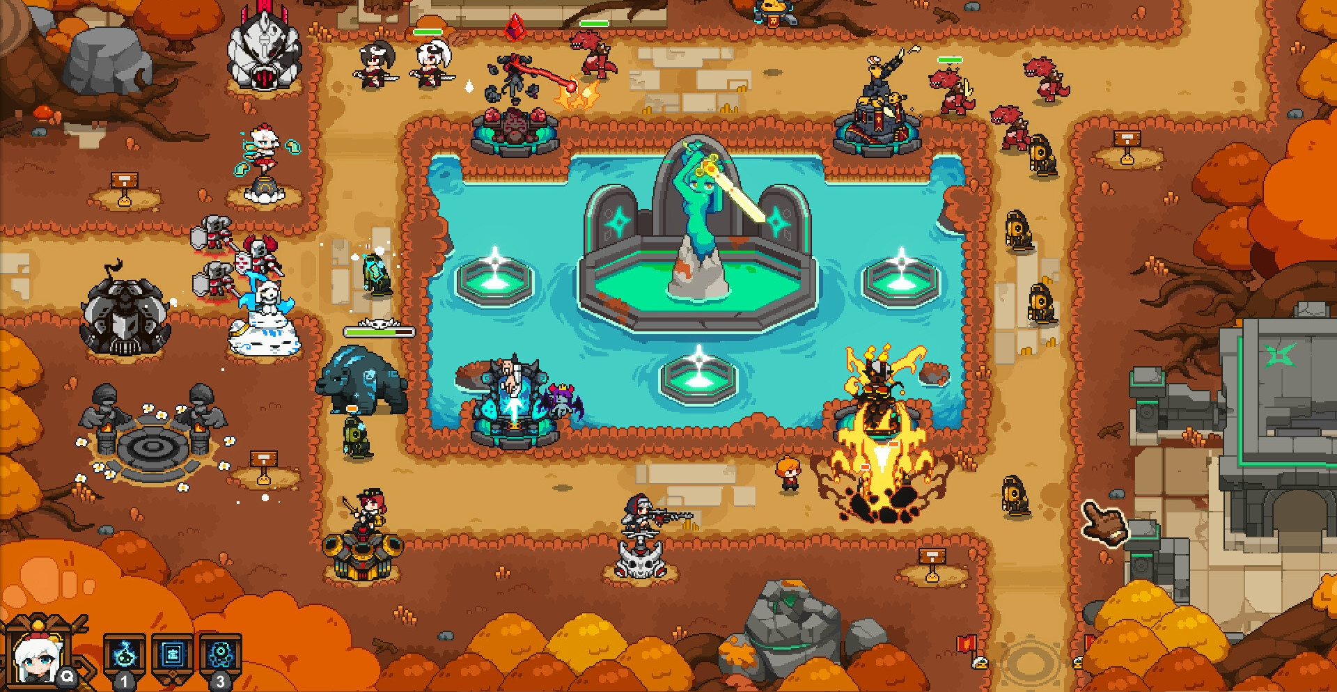 15 эволюционирующих башен с различной специализацией и мощью.