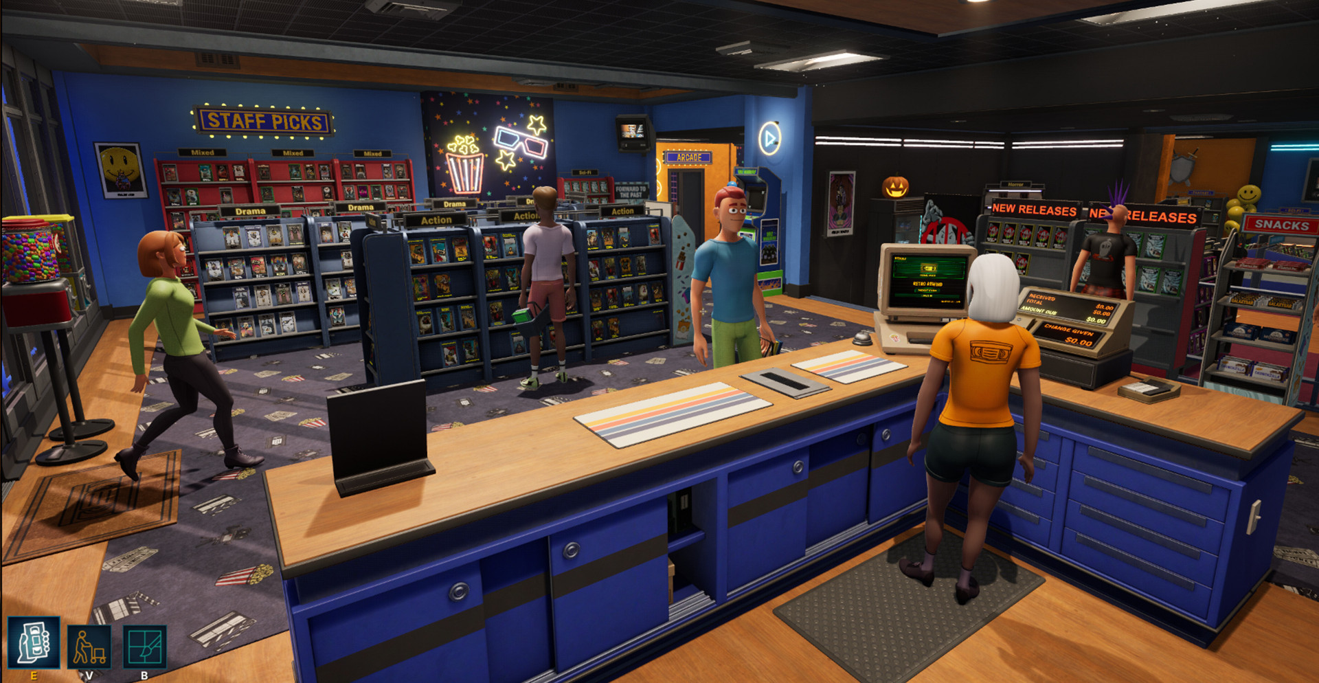 Retro Rewind - Video Store Simulator — это симулятор видеопроката, передающий дух золотой эпохи VHS. Игрок открывает собственный магазин, наполняет полки кассетами и строит бизнес с нуля. Управление продажами, выдачей фильмов и покупкой новых изданий превращает каждый день в увлекательный цикл, где успех зависит от внимательности и качества обслуживания клиентов.