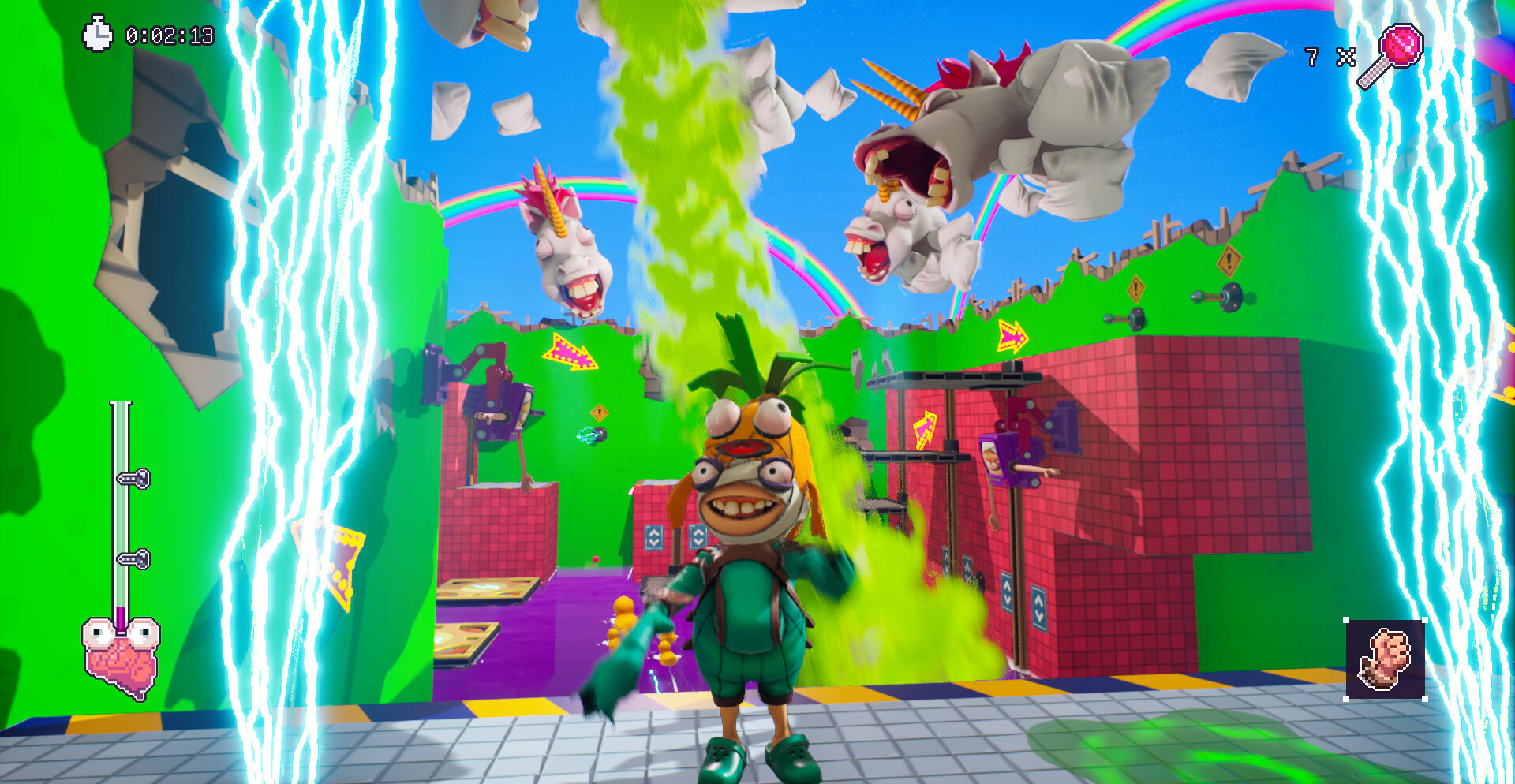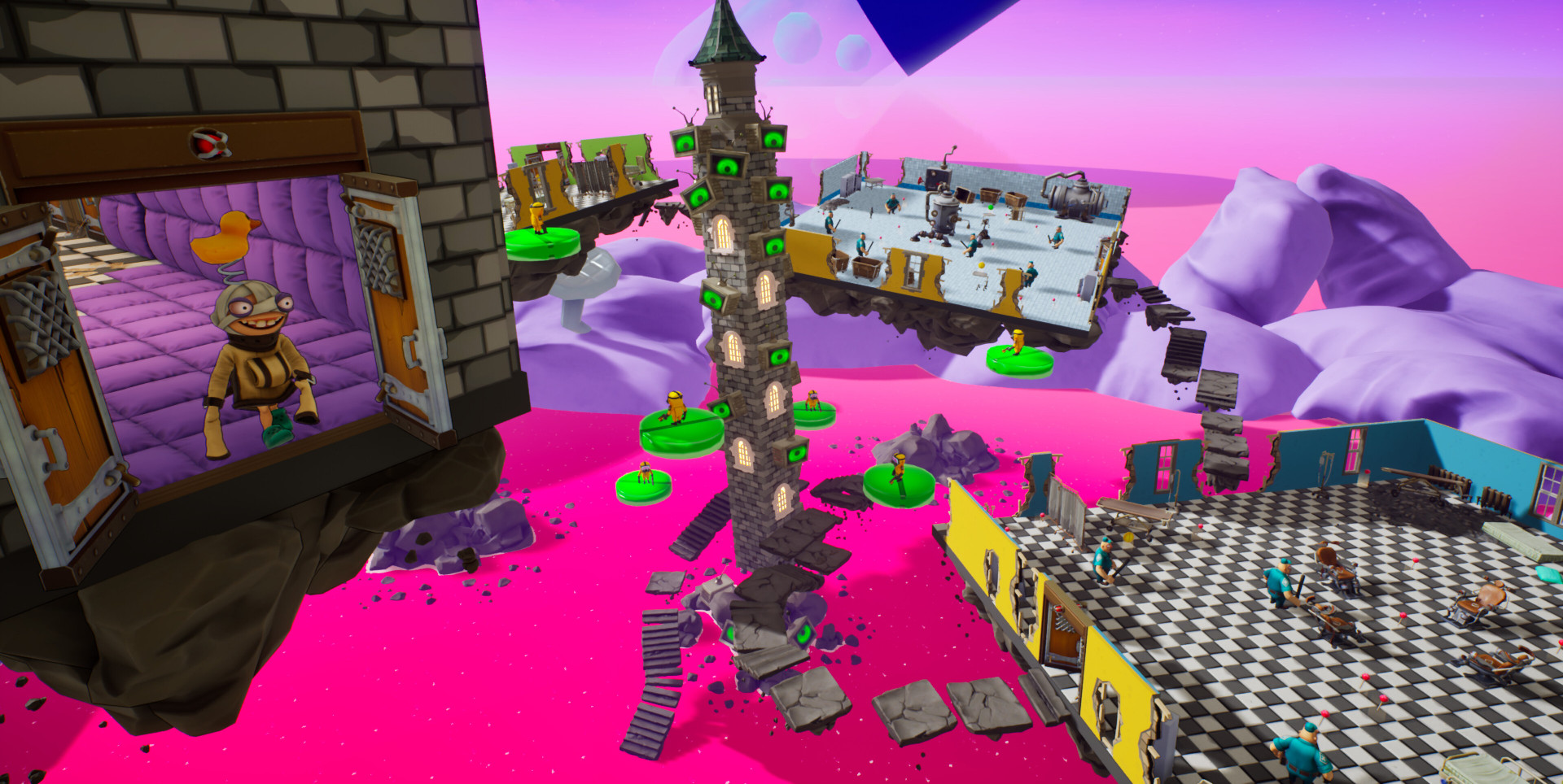 Игровой процесс строится вокруг сложных комнат с ловушками, платформингом и головоломками, требующими синхронных действий. Драки, физика и взаимодействие с окружением создают постоянное напряжение, а голосовой чат становится ключевым инструментом координации. Любое неверное движение способно отправить всех в нокаут, поэтому успех зависит от взаимопомощи и быстрой реакции.