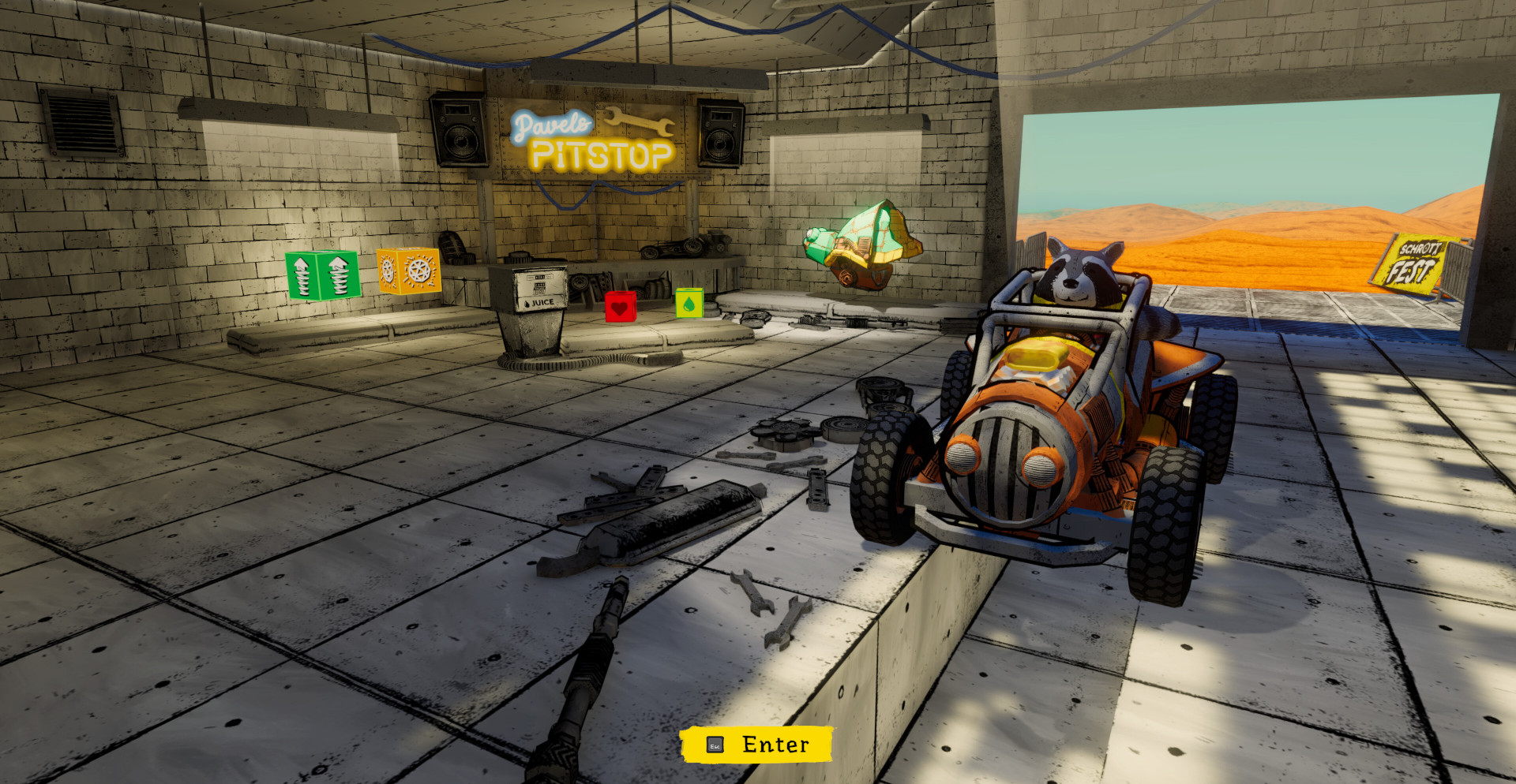 Schrott – настало время для увлекательной поездки с этой классической рогалайт-гонкой! Где вы сможете выполнить немало сумасшедших трюков, собрать ценный лут и настроить свое нетипичное авто. Но как далеко у вас получится зайти прежде чем ваша поездка станет настоящим безумием?