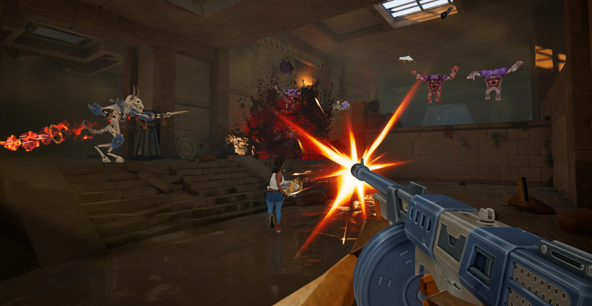 Сражения строятся вокруг непрерывного давления и огромного количества врагов, наступающих со всех сторон. Игрок использует мощный арсенал, комбинирует способности и подбирает улучшения, усиливающие стиль прохождения. После поражения прогресс не обнуляется полностью, открывая новые возможности и делая каждую следующую попытку более продуманной и разрушительной.