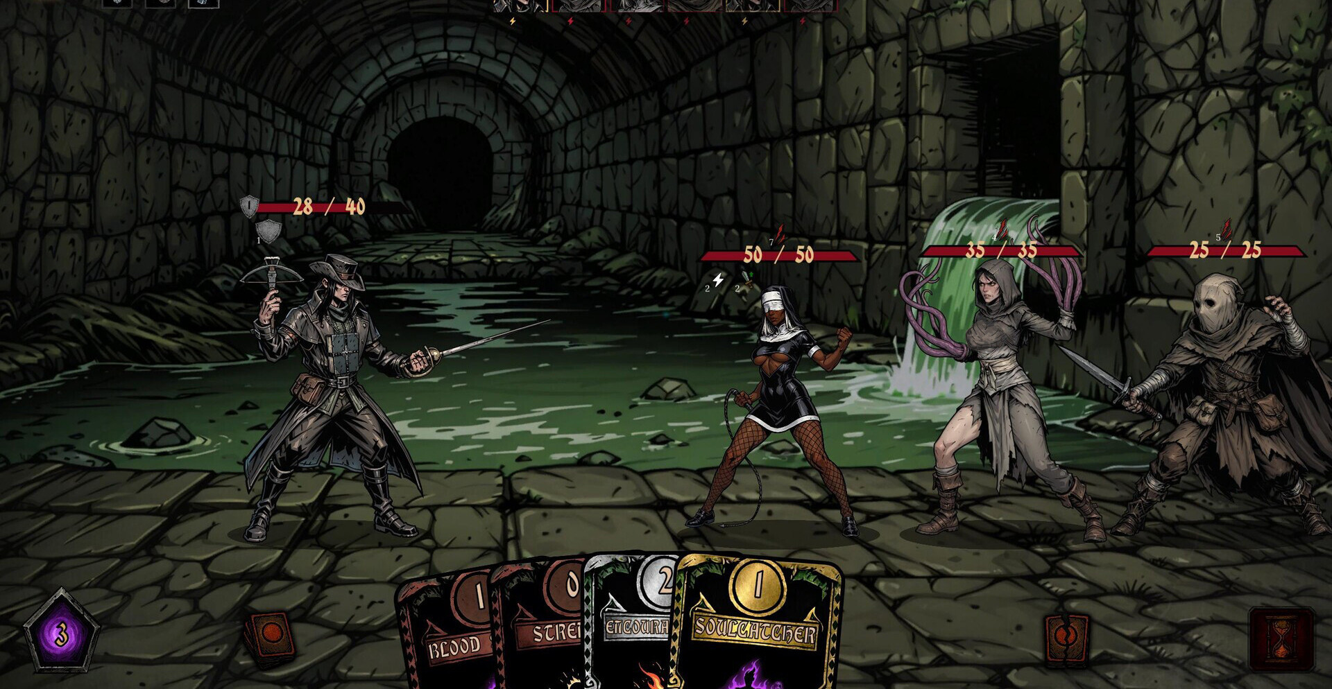 Карты дают разные эффекты, и вся глубина раскрывается в том, как они сочетаются между собой в одном ходе. Можно выстраивать агрессивные цепочки, быстро ломая защиту, или играть от выжидания, собирая ресурсы под мощный выход. Противницы не дают расслабиться: у каждой своё поведение, свои паттерны и давление, из-за чего приходится менять подход прямо по ходу боя, а не играть по одной схеме.