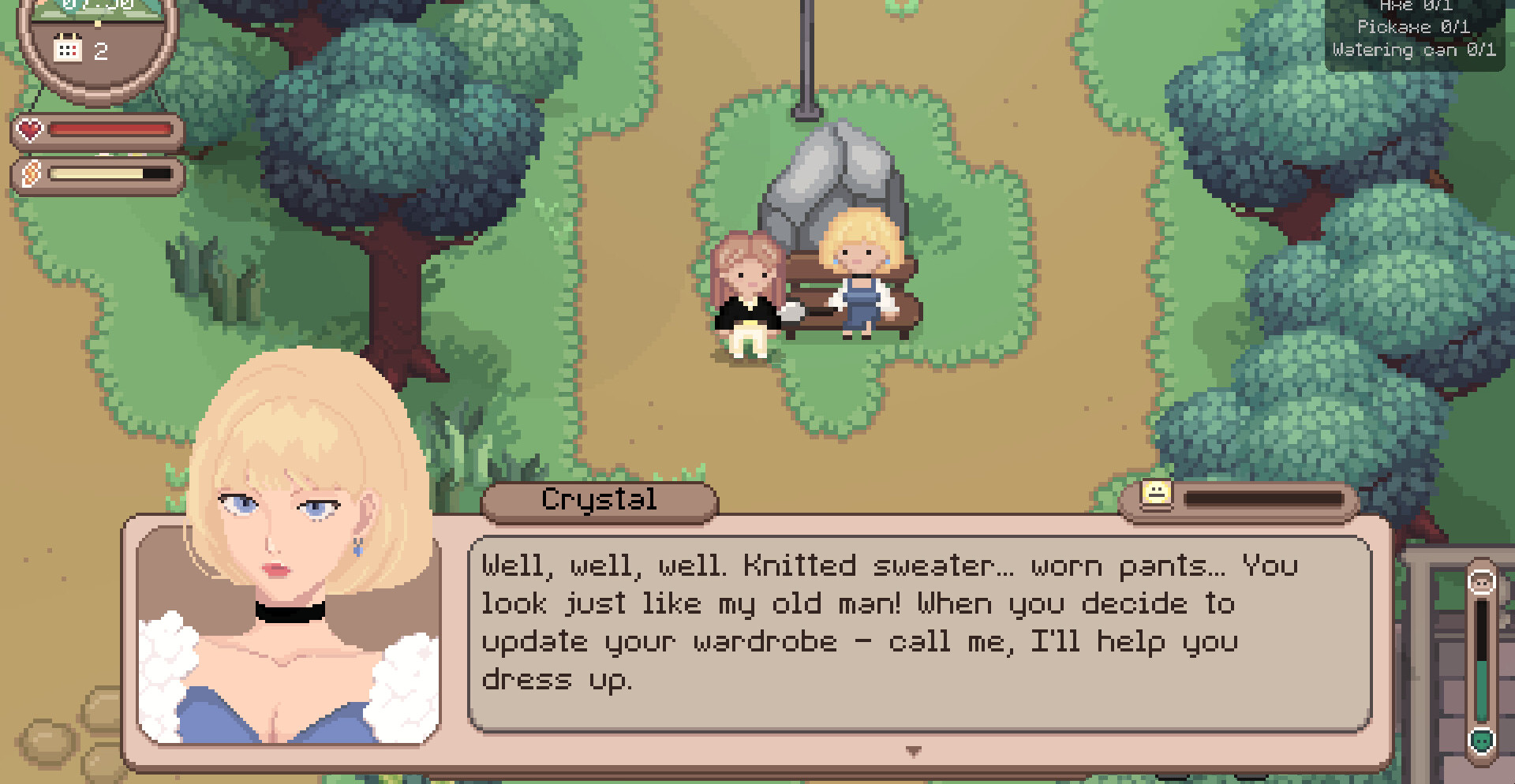 Поселение наполнено людьми со своими привычками и историями. Общение с ними открывает новые возможности и задания, позволяя узнать больше о жизни на острове. Постепенно герой становится частью общества, участвует в местных занятиях и завоёвывает доверие окружающих, скрывая истинную причину своего появления.