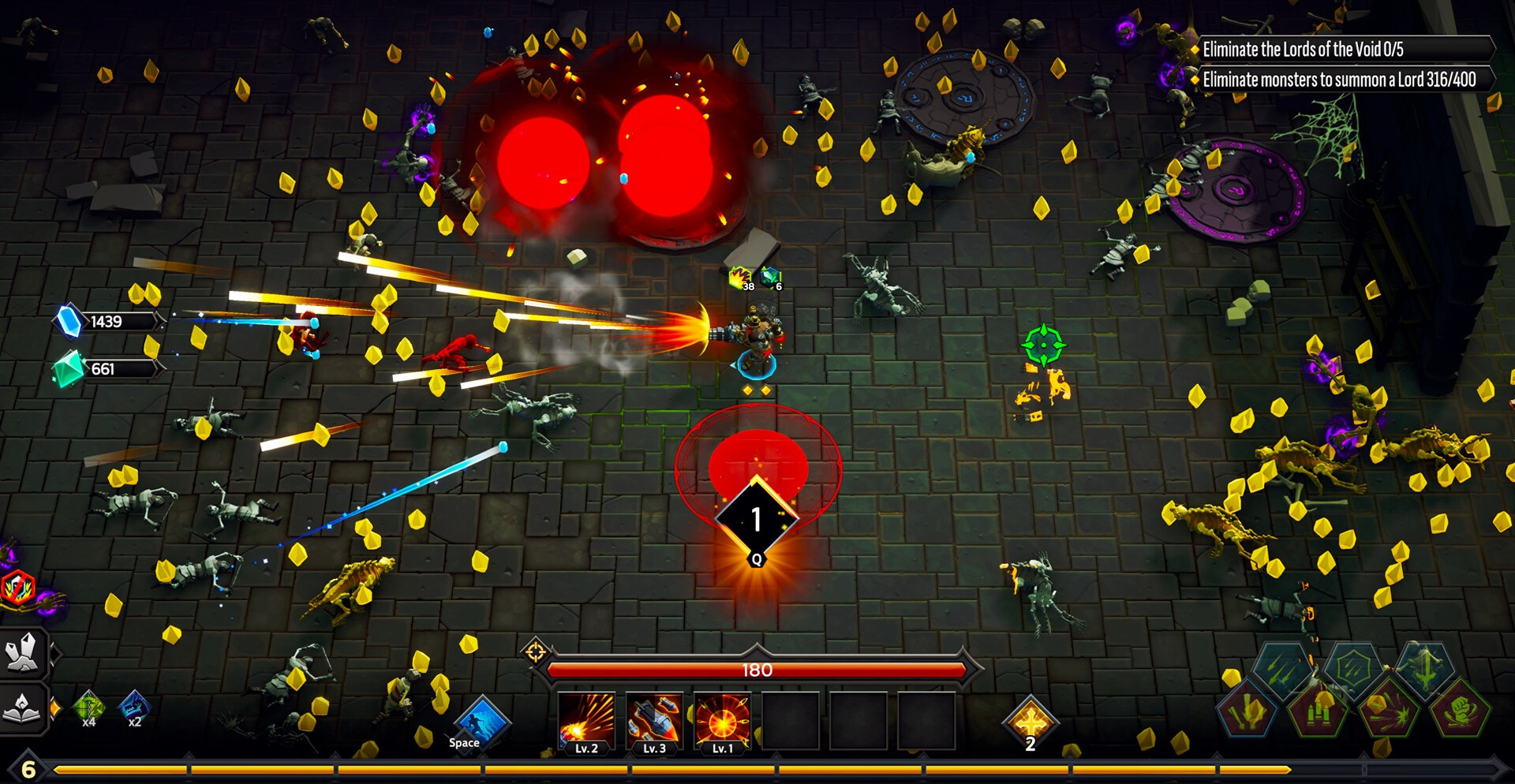 Здесь вы становитесь охотником Бездны, который получил новое задание. Разбивайте волны врагов и получайте за это награду. За золото можно открывать новых персонажей, изучать заклинания, пополнять припасы и покупать более мощную экипировку.