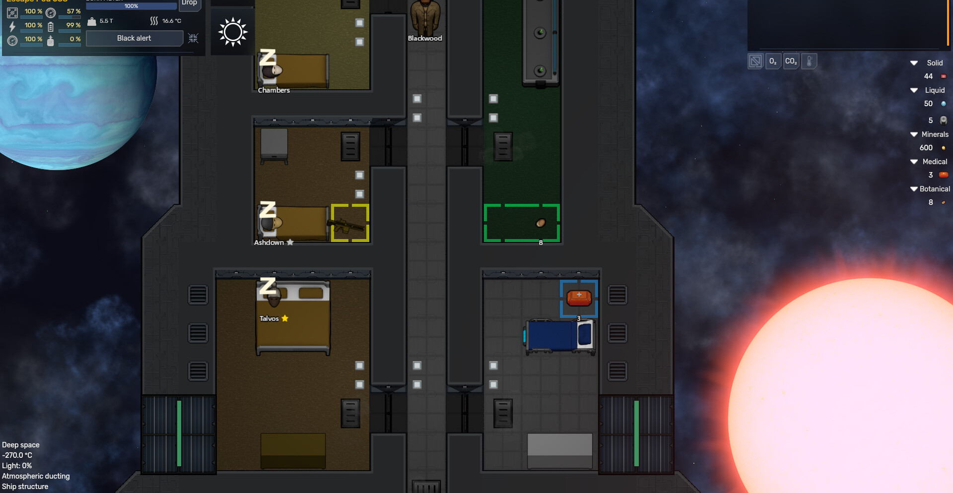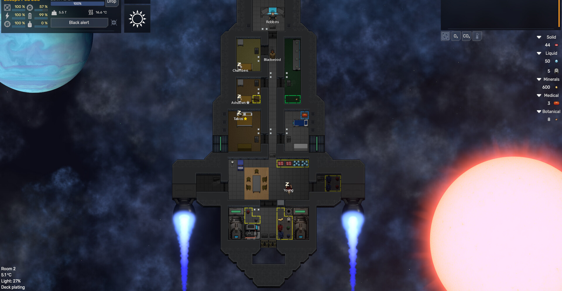 Детальная симуляция систем корабля и ресурсов.