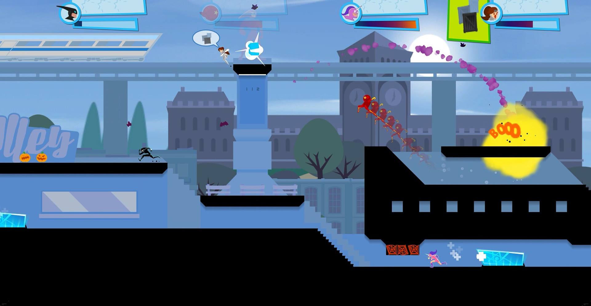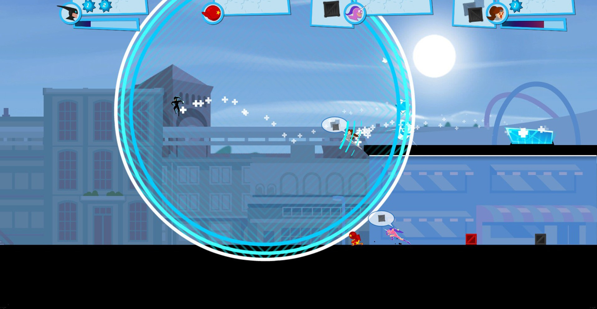 Именно поэтому герои решили соревноваться кто первым попадет на место преступления и совершит подвиг. Целью игры является устранение всех конкурентов, а для этого понадобиться оставить их далеко позади себя. Здесь можно использовать различные гаджеты и окружение. И, в каждом маленьком раунде вы найдете уникальные препятствия, которые необходимо преодолеть.