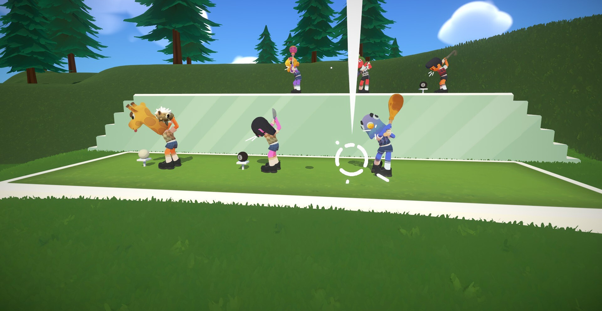 Super Battle Golf — это хаотичная онлайн-игра для компании, совмещающая аркадный гольф и соревновательный экшен, где все участники действуют одновременно. До восьми игроков выходят на поле без очередности ударов, стараясь первыми загнать мяч в лунку любыми средствами. Победа зависит не только от точности, но и от способности мешать соперникам в реальном времени.