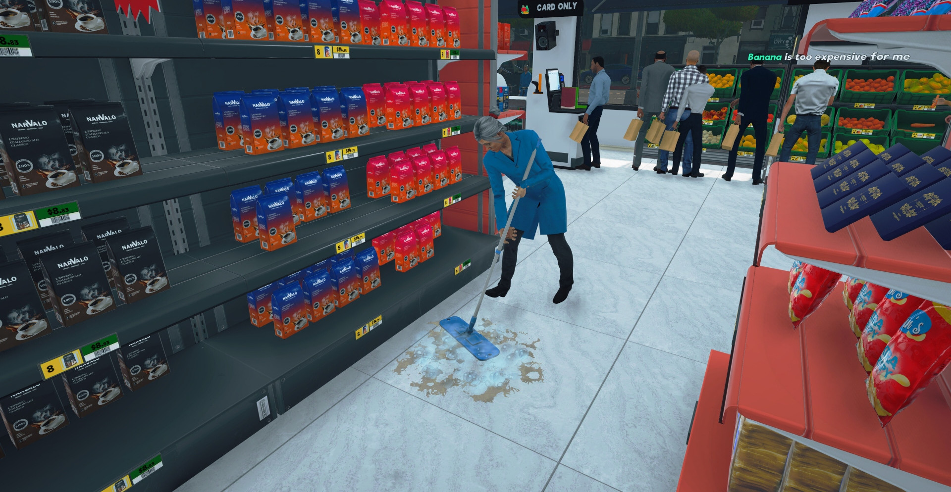 Supermarket Simulator – возьмите в свои руки управление собственным супермаркетом! Где вам понадобиться добавлять новые полки, обслуживать клиентов за кассой, выполнять обработку онлайн-заказов и развиваться.