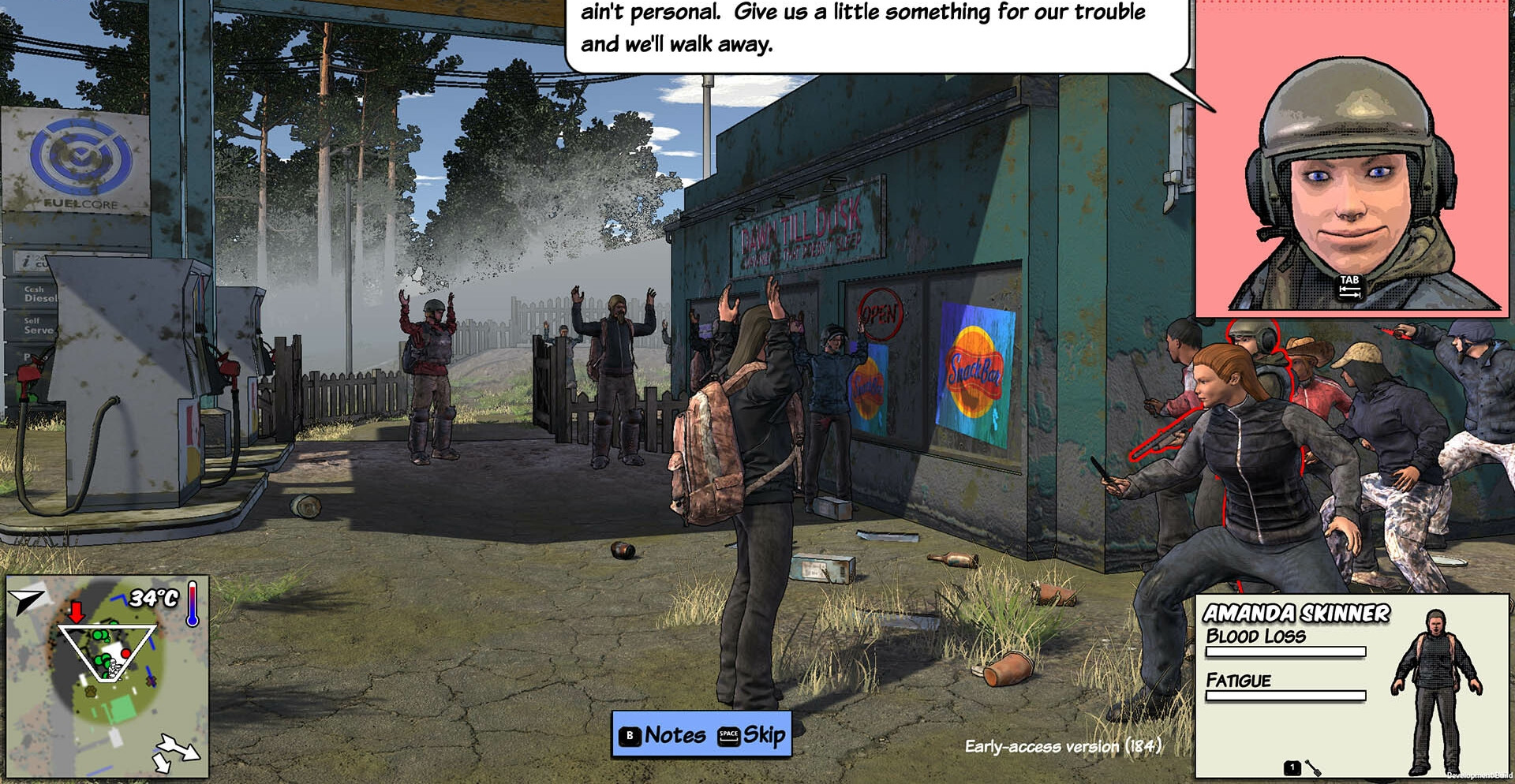 Крадитесь ближе к врагам, чтобы провести внезапную атаку и затем стащить их ресурсы. Кидайте бутылки или куски мяса, что позволит отвлечь зомбяков. Маскируйтесь в специальную одежду для повышения навыка скрытности.