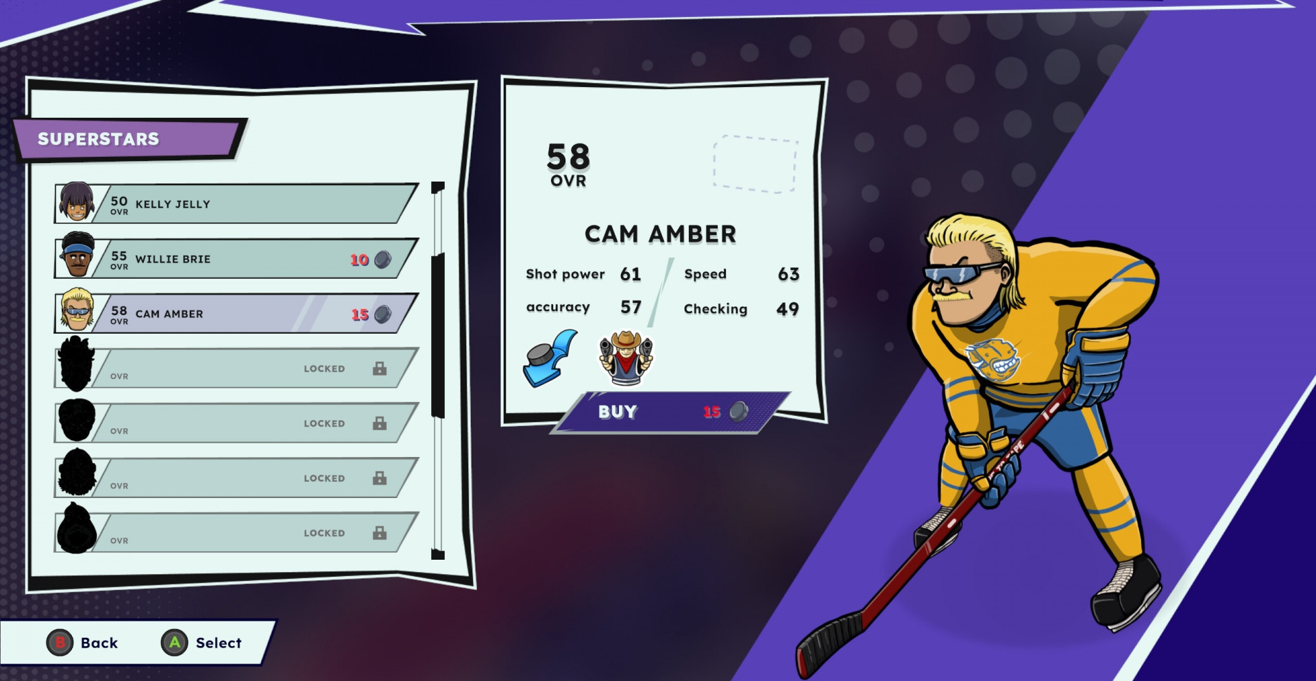 Интересной особенностью игрового приключения будет возможность выбирать снаряжение для своего игрока. Играть предстоит не за команду, а за отдельного игрока и попытаться любыми средствами достичь желаемого результата. Поэтому у вас будет время между матчами посещать местного мастера, который занимается изготовлением клюшек и обмундирования. С виду они не будут отличаться от стандартных вариантов, но вот функциональный потенциал будет у них значительно выше, поэтому стоит задуматься о том, что именно брать с собой на игру. Аналогичным способом могут пользоваться все игроки, включая и ваших соперников. Поэтому необходимо быть внимательным и приготовиться к неожиданным сюрпризам во время матча.