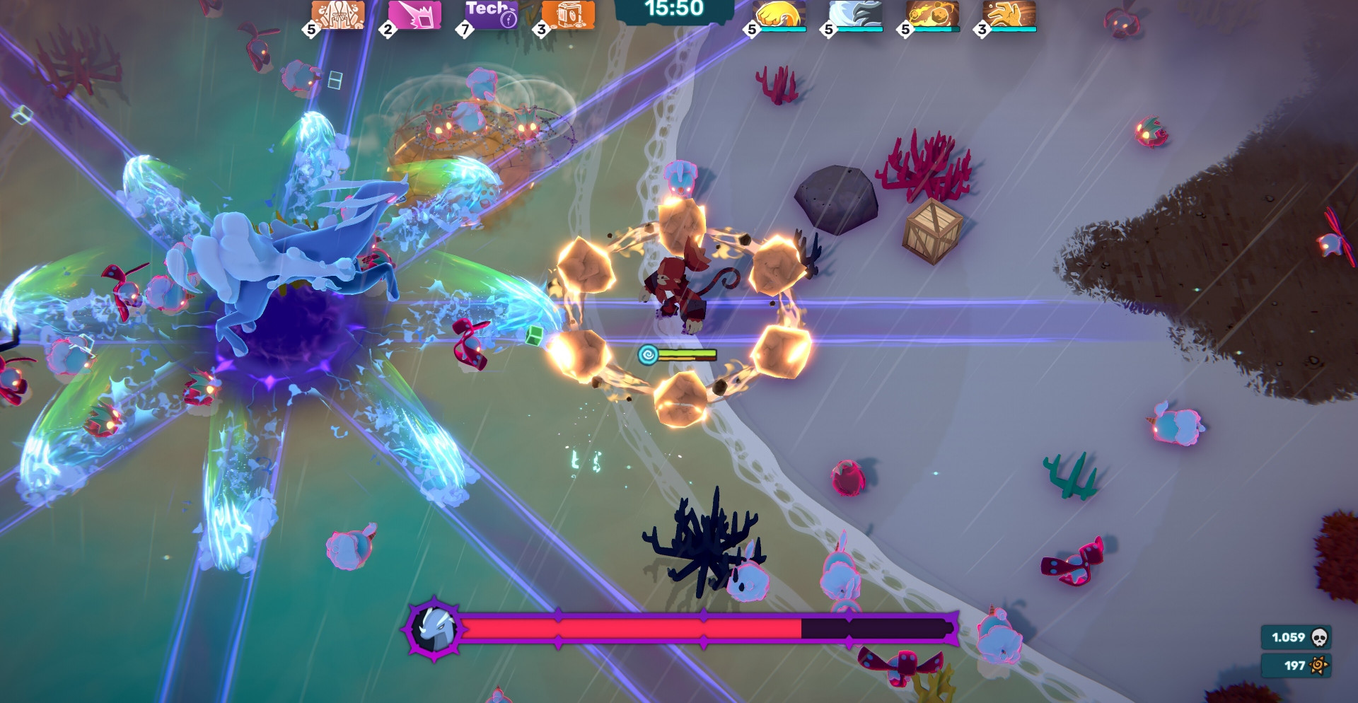 Temtem: Swarm – получится ли у вас выжить в атаке роя? Да! Если вы будете развивать мощные способности и находить эффективные стратегии. К тому же, победите по-настоящему гигантских боссов в нашем быстроразвивающемся шутере в стиле «ullet heaven» и выживания.