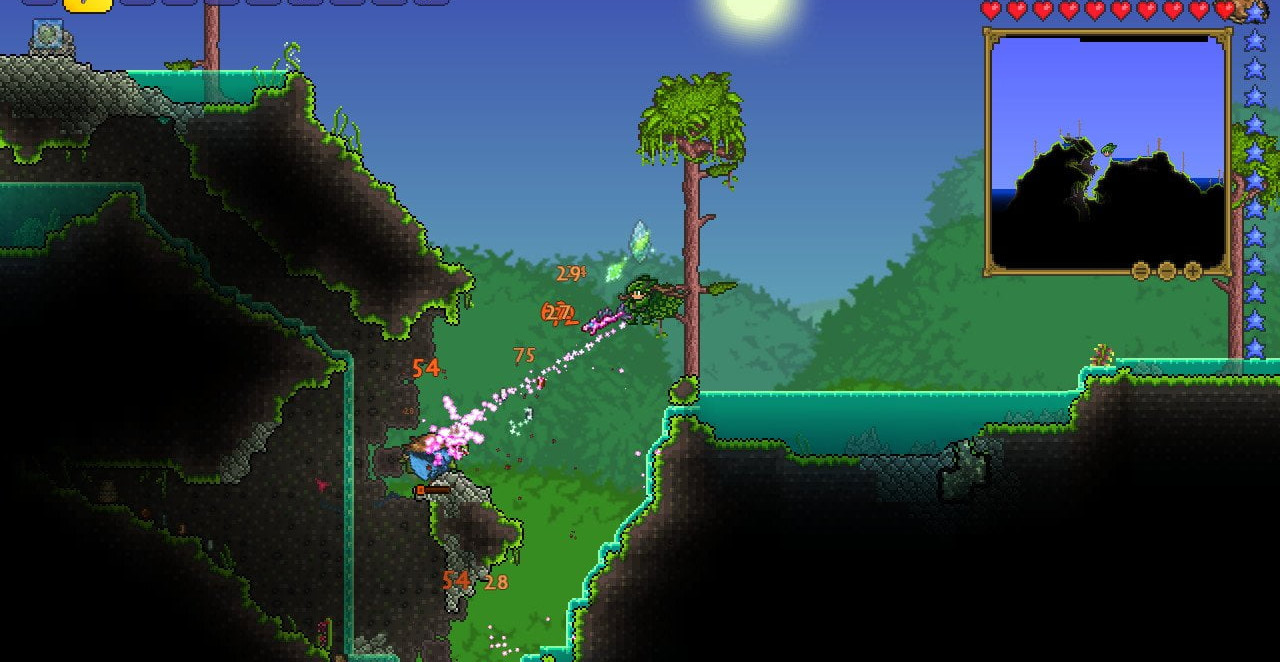 - Наряду с интереснейшей одиночной кампанией в игре Terraria представлен многопользовательский режим, который во многом схож с синглплеером, но несет в себе две противоположные особенности. С одной стороны, сражаться с реальными геймерами всегда интереснее, чем с компьютером. С другой стороны, при неудачном исходе битвы монет будет потеряно больше, чем в борьбе с ИИ.