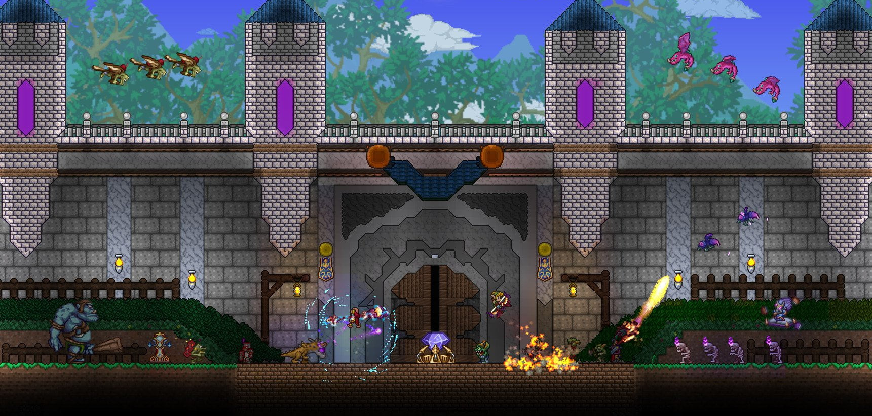 Террария — приключенческий инди-платформер с элементами ролевой игры и песочницы. Уже такое богатое название жанра сообщает, что проект весьма увлекателен и разнообразен. И действительно, здесь предстоит путешествовать по красочному миру, общаться с интересными неигровыми персонажами, сражаться с врагами, изобретать предметы, строить объекты, делать раскопки и просто наслаждаться жизнью! Terraria — это ретрографика и веселые тетрис-мелодии, яркие цвета и забавные персонажи. С одной стороны, все просто, с другой — очень сложно. В общем, игровой процесс невероятно захватывает, поэтому появляется все больше желающих скачать торрент Terraria 1.4.0.1 версии.