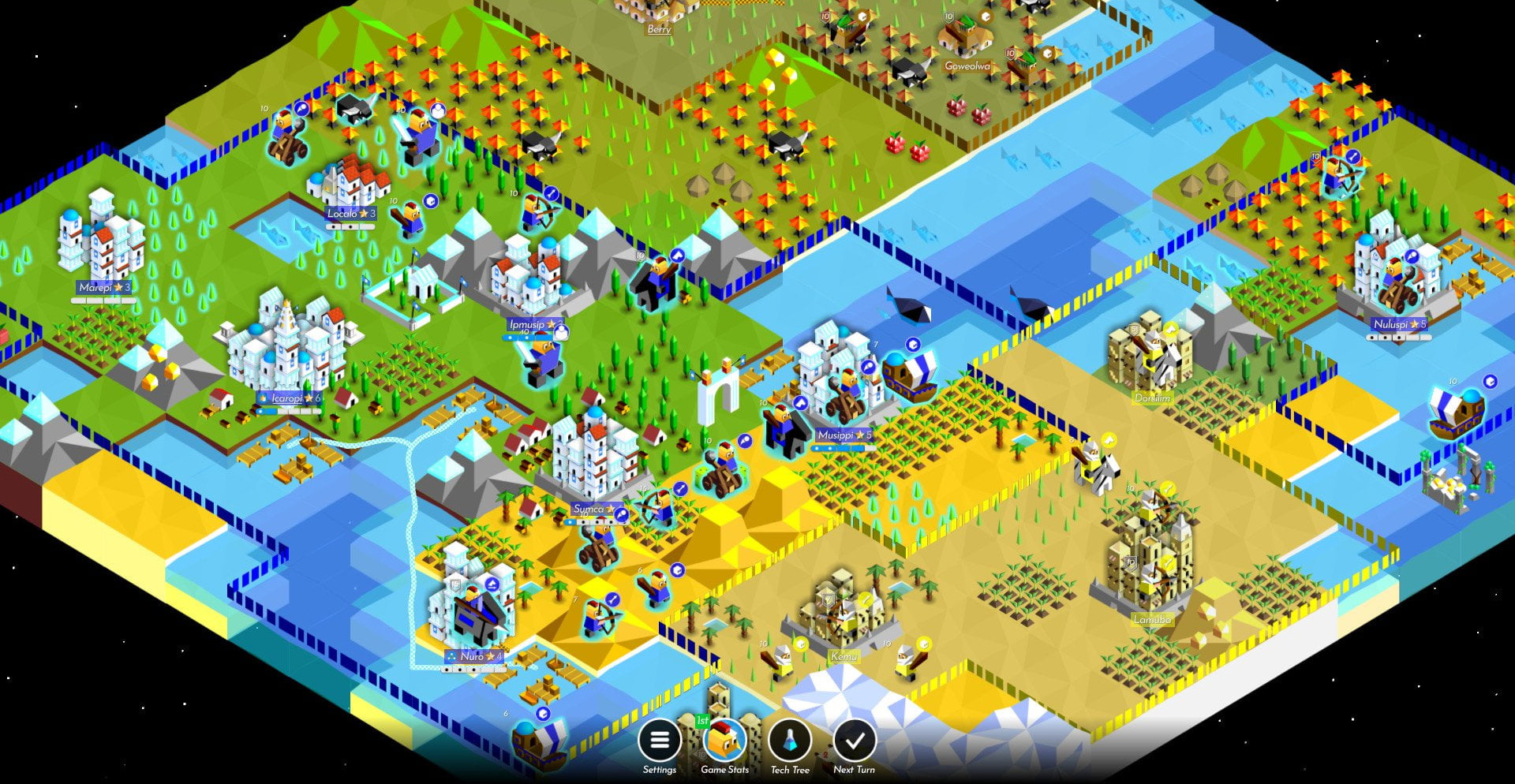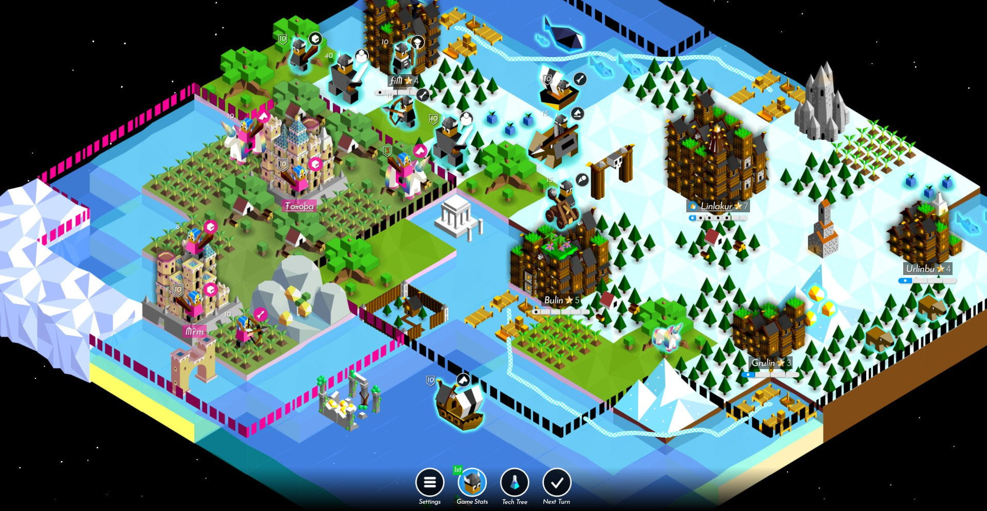 Несмотря на то, что в этой игре основное ориентирование будет направлено на ведение войны, вам не стоит забывать про политику. Налаживание отношений на ранних этапах приключения – это вполне нормальная затея. Не стоит думать, что подобное направление не отразится на вашей основной игре. Наоборот, вам предстоит проявить сноровку профессионального игрока, постараться оценить всех своих соперников и достичь благоприятного результата. А для такого случая достаточно будет просто скачать The Battle of Polytopia через торрент на ПК на русском языке.