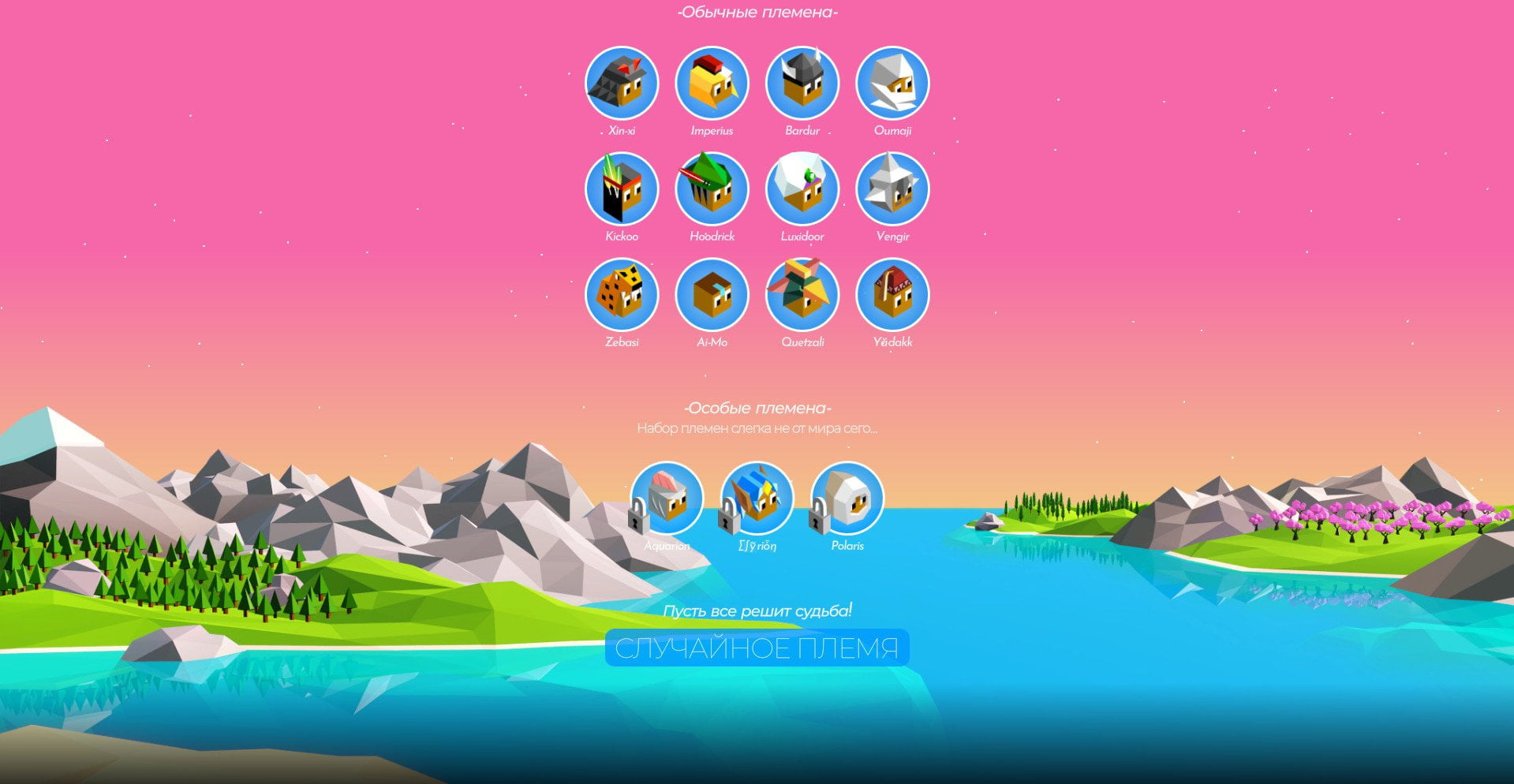 Возможность выбрать, за какое именно племя играть.