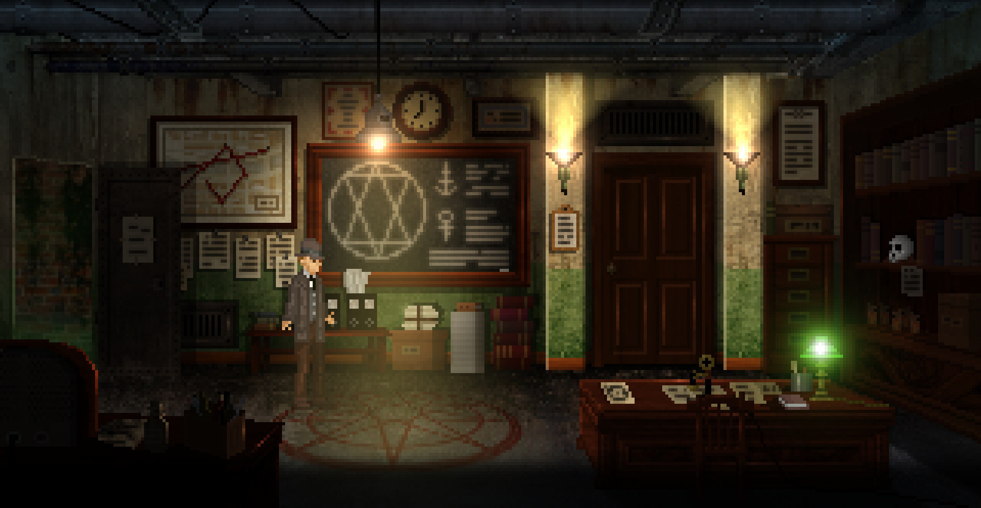 The Dark Rites of Arkham — это мрачное приключение в жанре Pulp & Click, где классическое детективное расследование постепенно превращается в кошмар лавкрафтианского масштаба. Ритуальное убийство в запертой комнате становится отправной точкой истории, в которой реальность Аркхема трещит по швам, а прошлое XVII века угрожает будущему всего человечества.