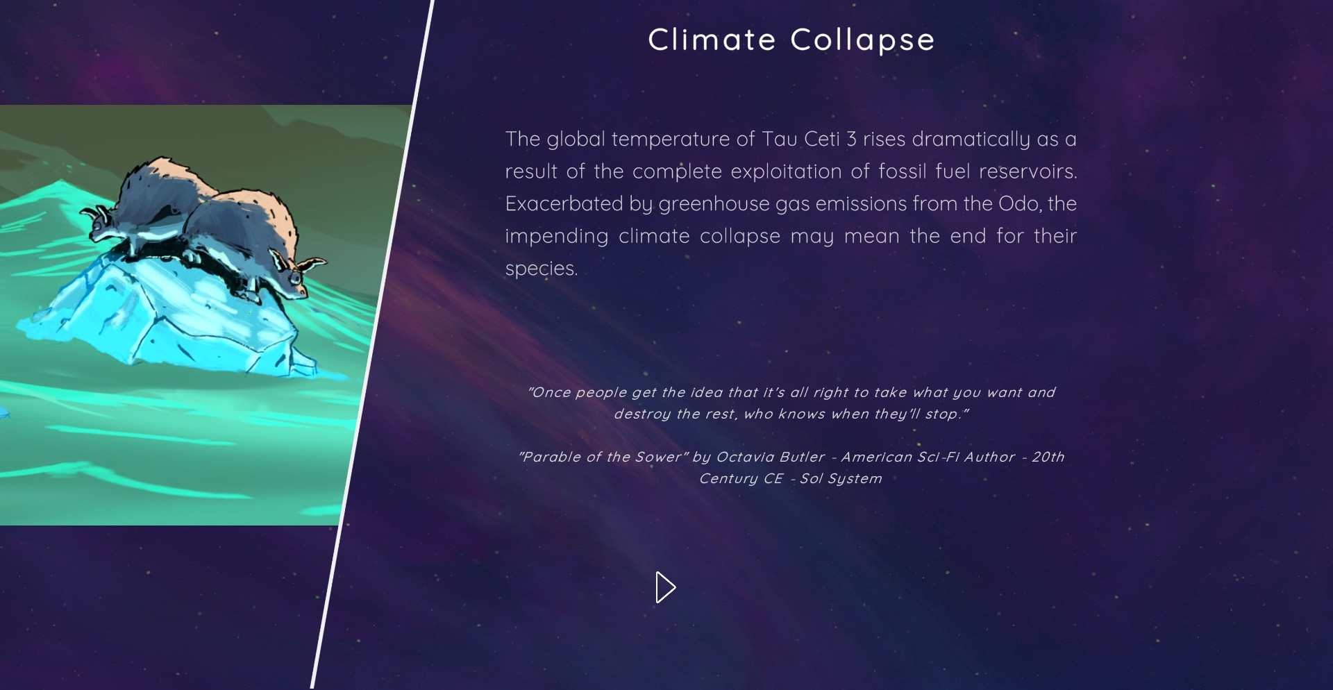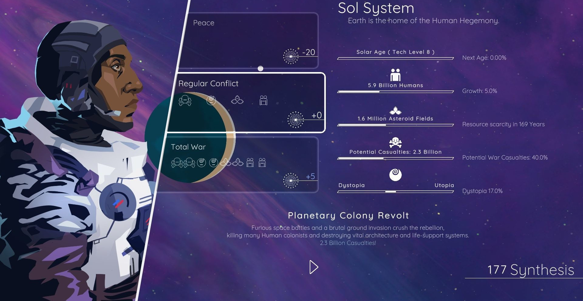 Разработчики обещают на релизе более четырех сотен случайных событий, которые поставят игрока перед непростым выбором. Последствия принятых решений могут отобразиться и через сотни игровых лет, так что мы нескоро узнаем, что станет с тысячами или даже миллионами существ, чьи жизни находятся в наших руках.