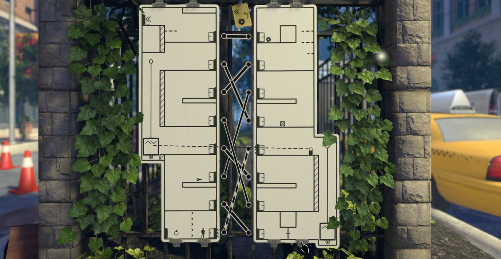 Игровой процесс в игре представлен в формате головоломок, которые происходят на территории различных локаций. В одном случае вы будете выбираться из табличек, которые расположены на строительной площадке, затем вы переместитесь на обычную улицу и т.д. Основные действия будут происходить на табличках, где можно будет взаимодействовать с дверьми, переходами и проводами. Постепенно головоломки будут усложняться, требуя правильного сочетания мелких деталей. В принципе, достаточно быть просто внимательным и стараться использовать все доступные предметы. Не упускайте из вида деталей, так как это в дальнейшем может ознаменоваться тупиком.