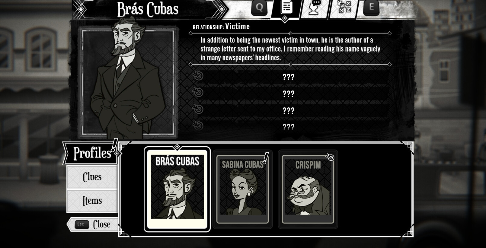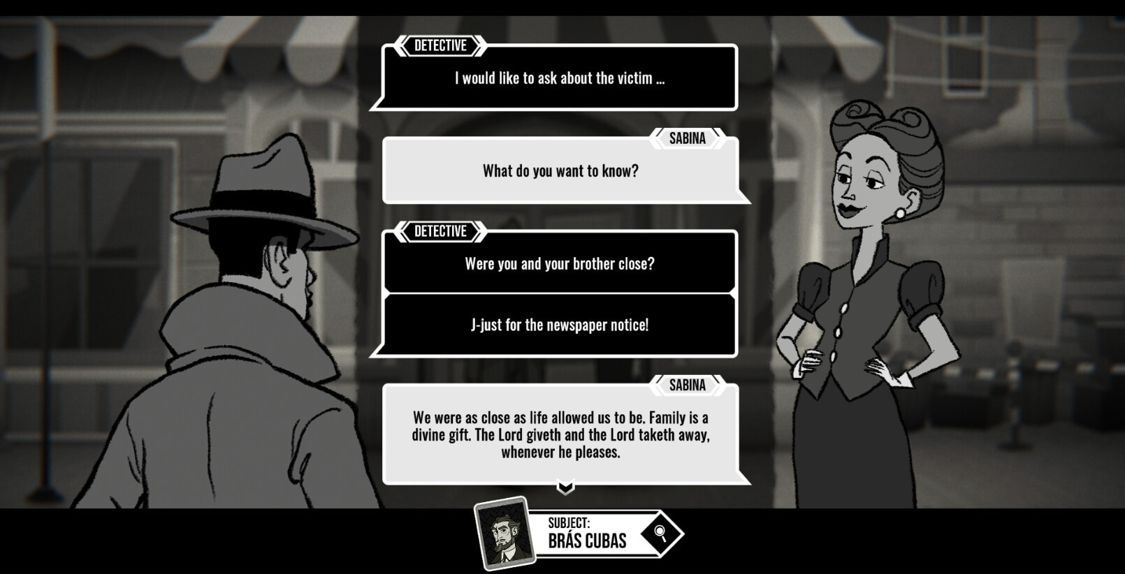 The Posthumous Investigation – перед вами открываются двери нуарной версии Рио-де-Жанейро 1937 года! Где вы сможете раскрыть секреты убийства знаменитого персонажа Браса Кубаса. Но вот только пока вы не узнаете правду, то будете погружены в настоящую временную петлю, жуткие заговоры и измены.