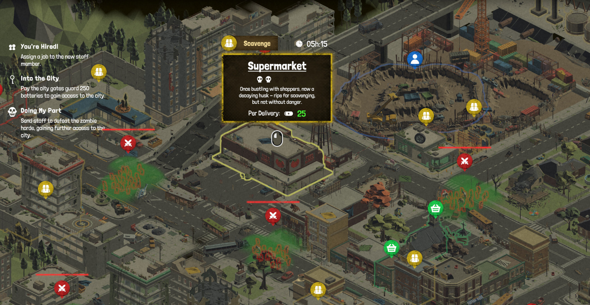 Найм выживших для работы, охраны и добычи ресурсов.