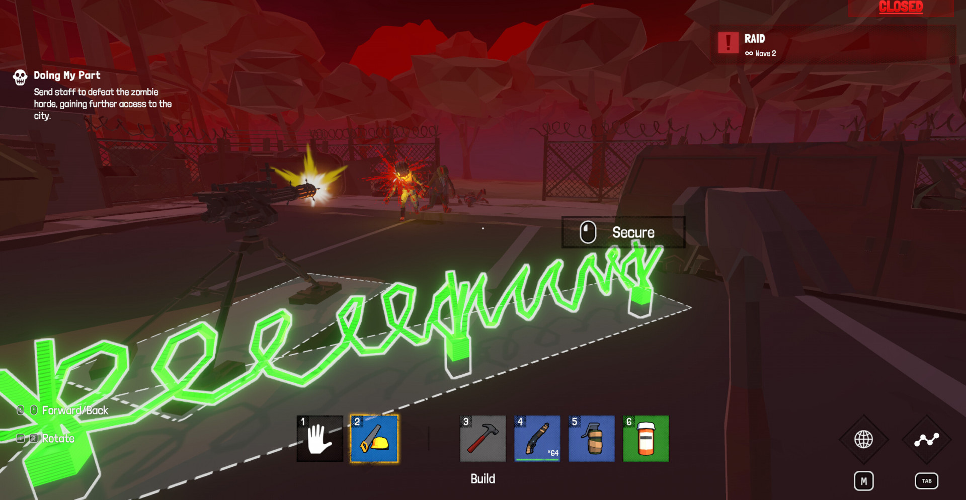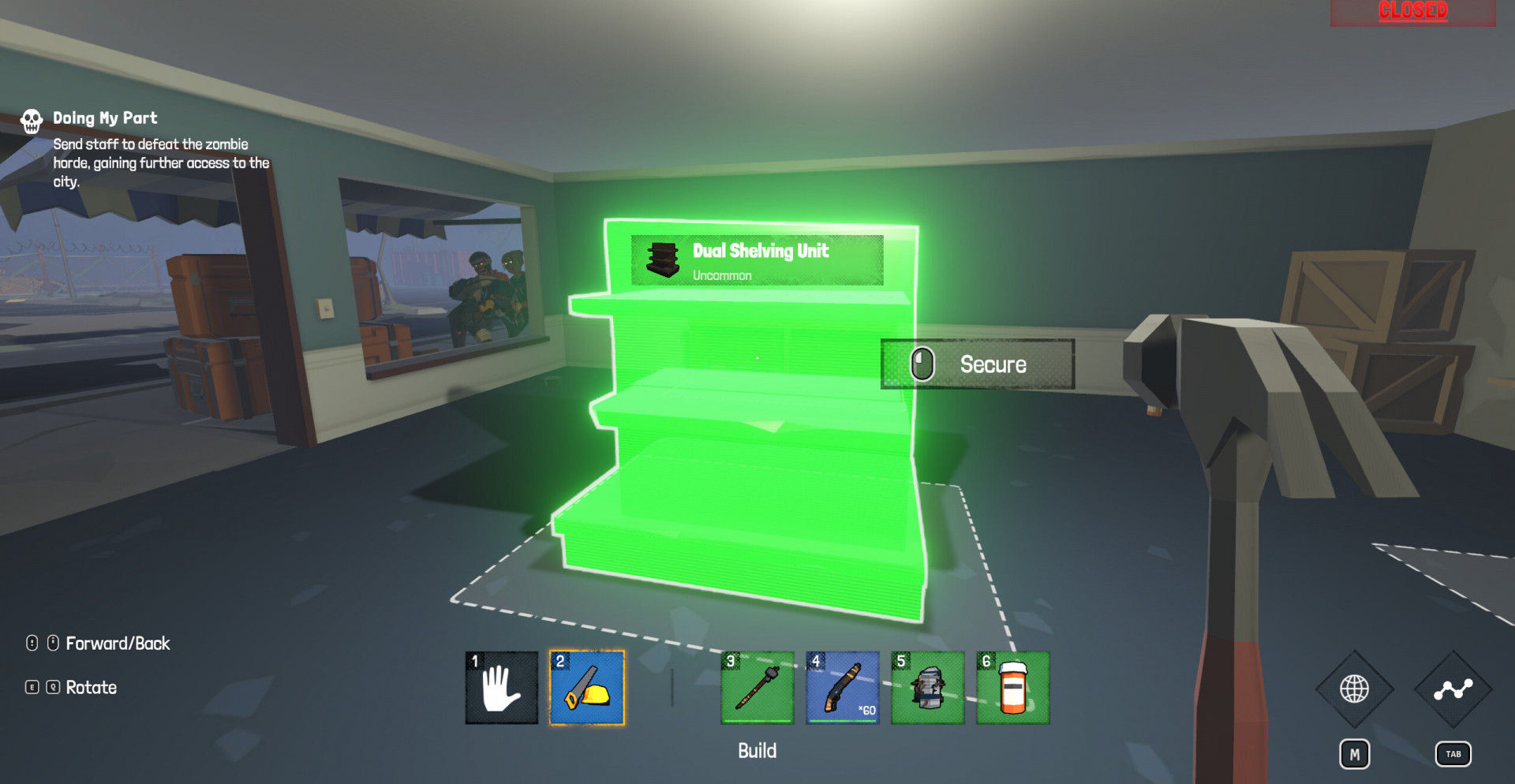 Опасность приходит не только от экономики. В любой момент зомби могут прорваться внутрь магазина, превращая торговый зал в поле боя. Игроку приходится защищать своё дело, используя оружие и помощь выживших. Со временем появляются новые способы укрепить магазин, превращая его в настоящую крепость посреди разрушенного мира.