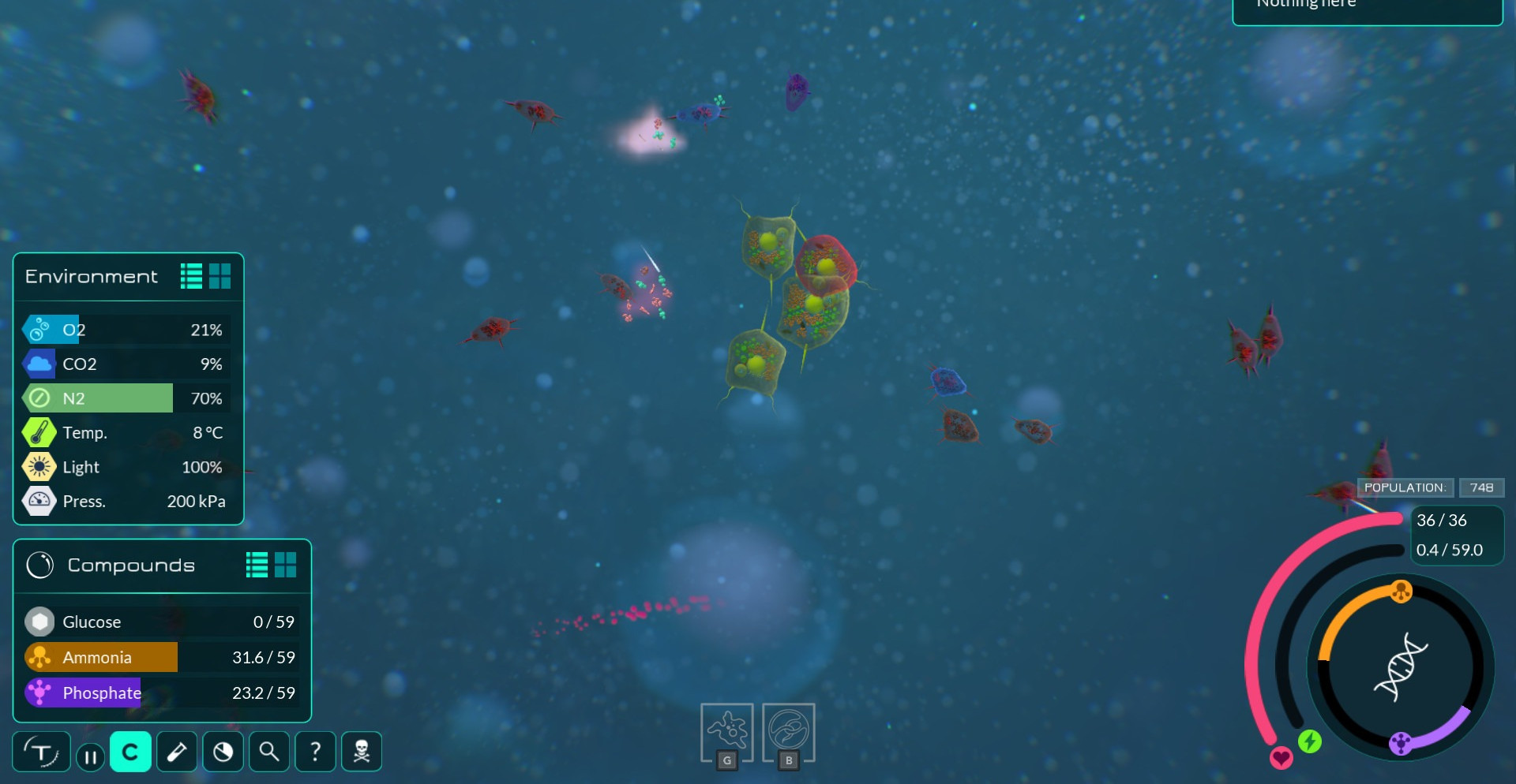 Вы будете управлять универсальным организмом на неопознанной планете. Основная цель – постараться выжить, постоянно адаптируясь под изменяющиеся условия, добиться развития, мутировать и процветать. В процессе игры вы будете постоянно сталкиваться с другими видами. Нужно постараться подавить их, размножаясь и захватывая все большие территории. На начальном этапе вам предстоит управлять одной бактерией, которая постепенно превращается в колонию. Плавайте по жидкой среде в поисках пропитания и ресурсов, необходимых для дальнейшего развития.