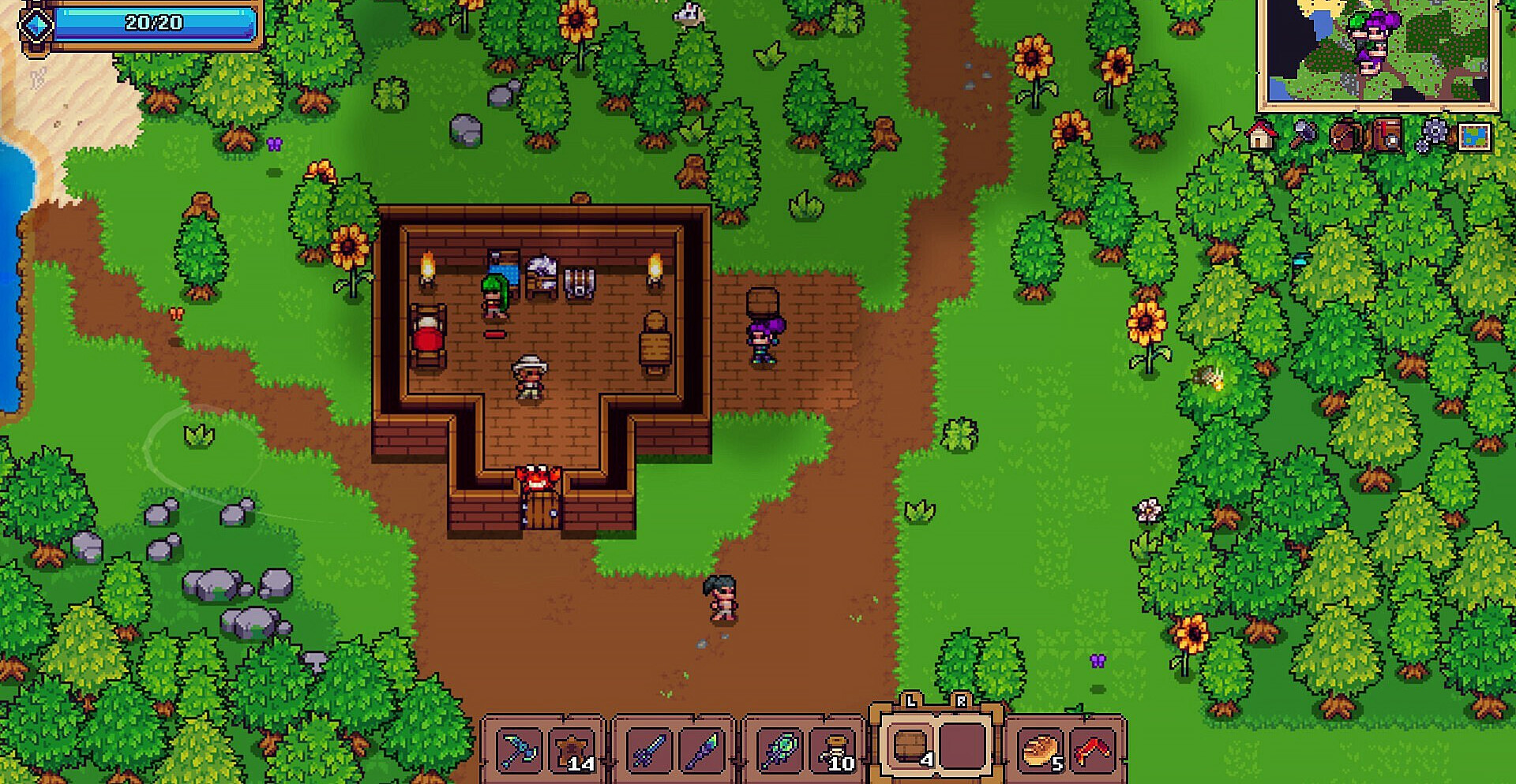 Стройте своё поселение, привлекайте NPC и развивайте инфраструктуру. Крафт, строительство, фермерство и рыбалка — всё это помогает не только выжить, но и сделать ваш дом уютнее. Яркий визуальный стиль и атмосферная музыка создают тёплую, но полную испытаний атмосферу.