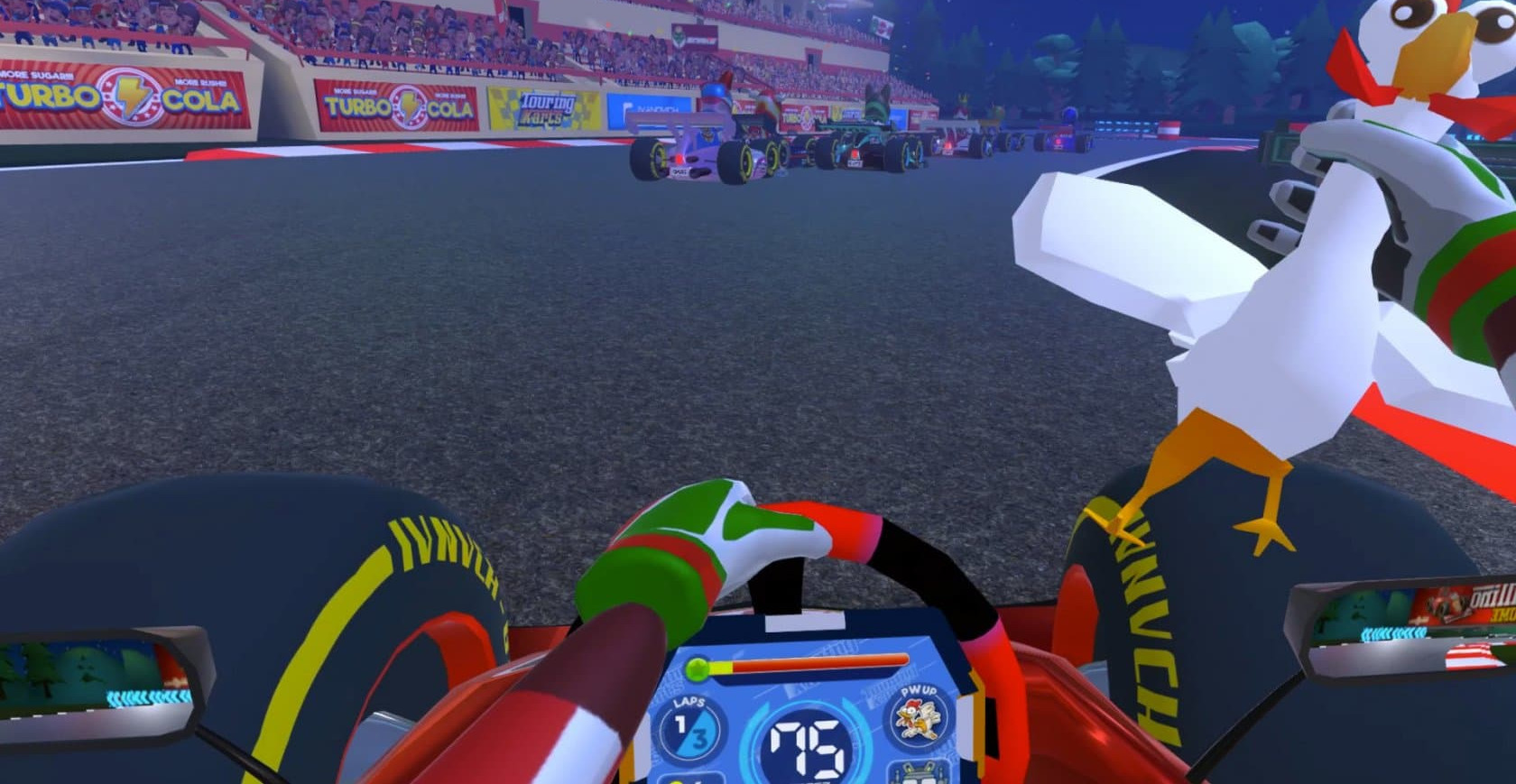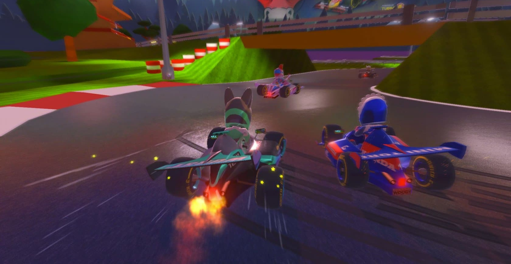 Главным преимуществом вашего приключения станет возможность насладиться благоприятной атмосферой приключения, используя дополнительные возможности во время гонки. К примеру, в игре будет довольно много эмоций, которые можно использовать прямо во время гонки. Есть возможность использовать дополнительные средства для достижения успеха в плане оружия и т.д. Игра предлагает много сюрпризов и вам предстоит все это освоить. Вам остается только скачать Touring Karts через торрент на русском языке. Мы желаем вам удачи и успешных гонок!