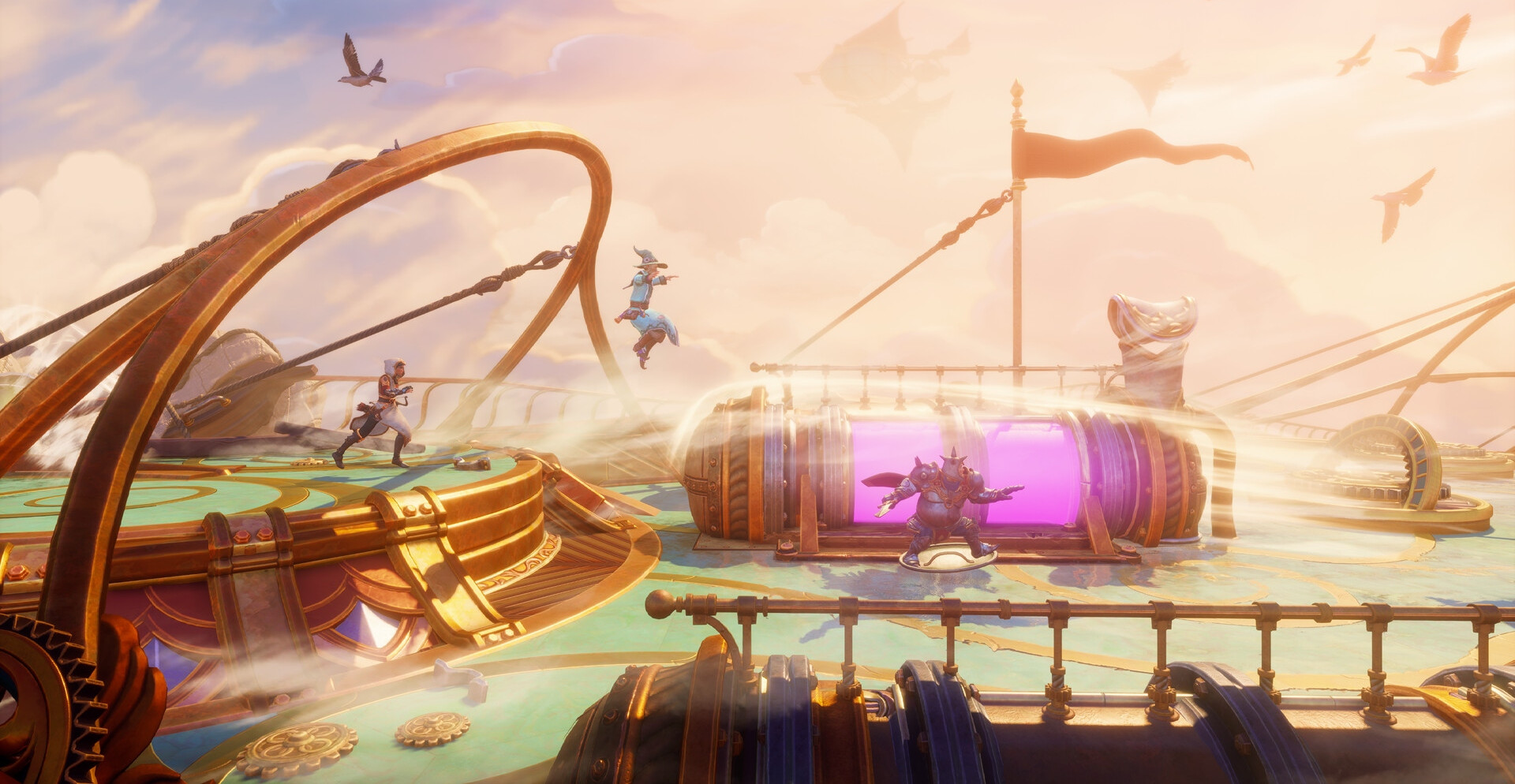 Думаете они смогут не только всех спасти, но и восстановить этот мир, а также вернуть справедливость? Помимо этого, отправьтесь навстречу захватывающим приключениям по 2,5D локациям и насладитесь очаровательными персонажами. Но только помните, что не все они будут дружелюбно настроенными! К тому же, насладитесь игрой в одиночку или вместе со своими друзьями. И конечно же не забудьте перейти скачать Trine 5: A Clockwork Conspiracy через торрент на ПК, а после развивайте своих героев.