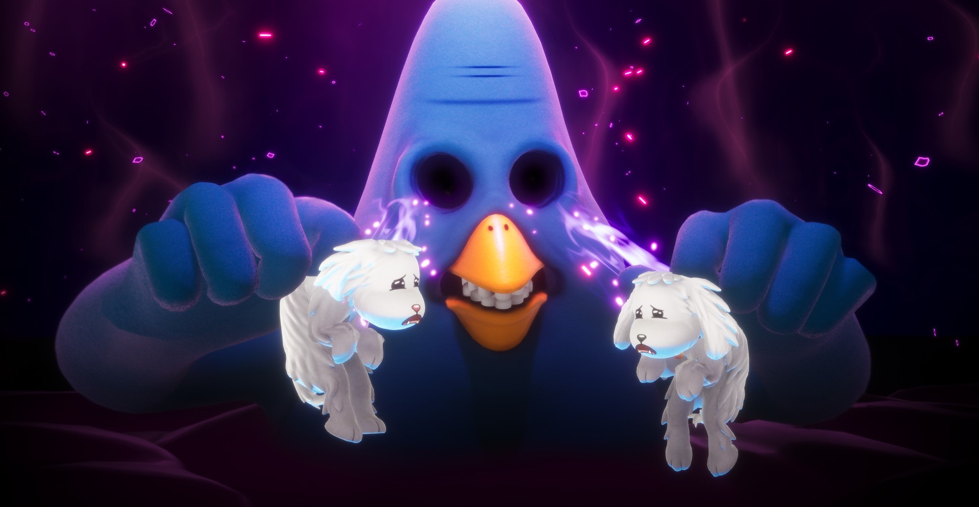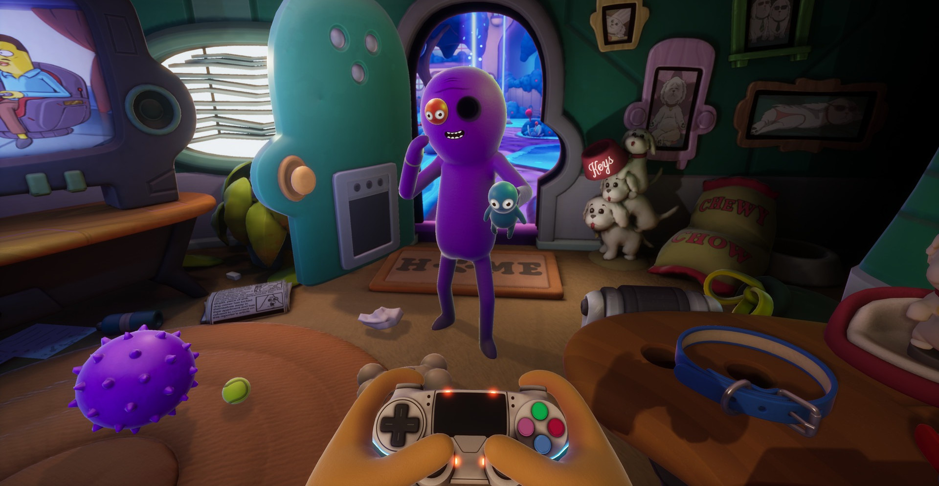 Собачек похищает некий сумасшедший, который запихнул их себе в глазные отверстия и теперь использует для уничтожения вселенной. В качестве вашего помощника выступает Тровер, который представляет собой фиолетового монстра без глаз, но это ему не помешает спасти вселенную!