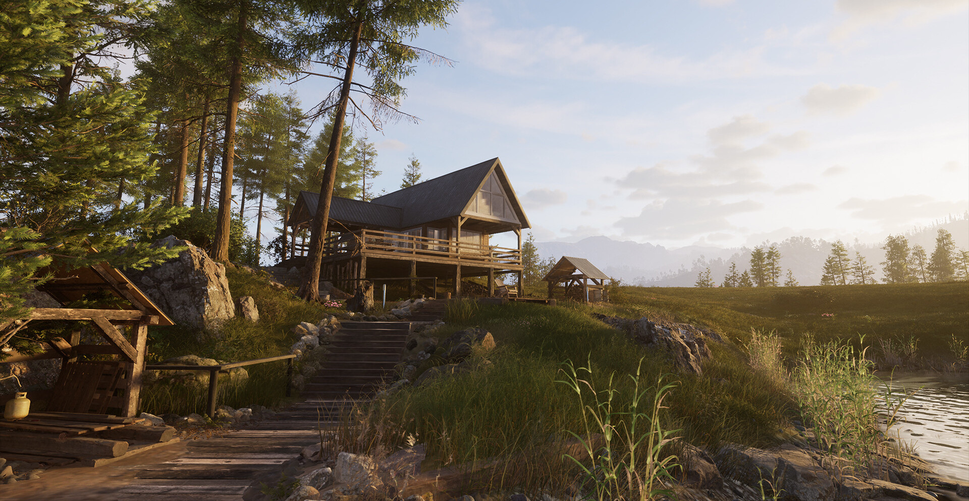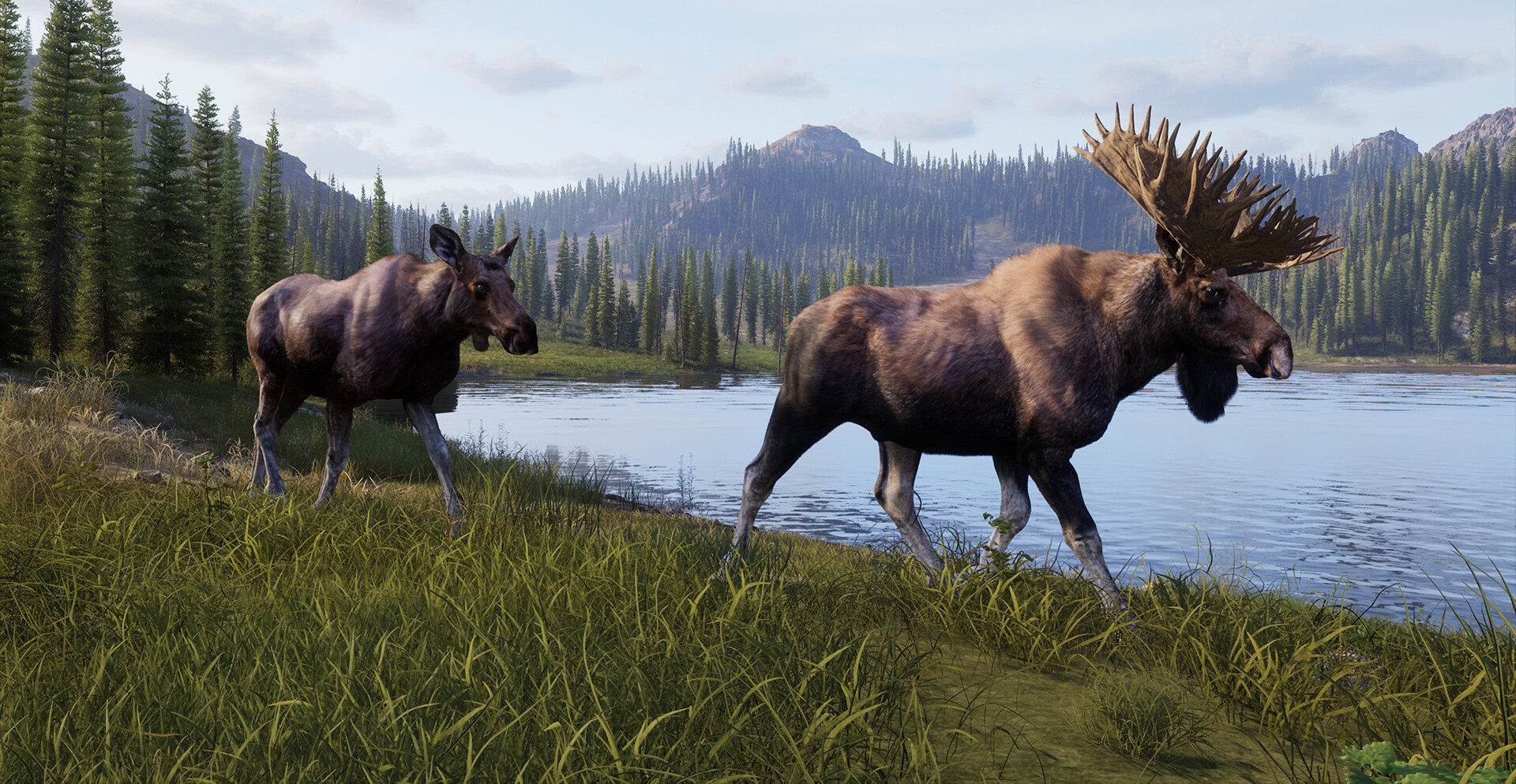 Мир поддерживает долгосрочную игру. Реальные бренды оружия и оборудования добавляют достоверности, а охотничий домик становится центром планирования, прогресса и демонстрации трофеев. Сюжетные задания в двух регионах дополняют симуляцию живыми персонажами и локальными историями, углубляя погружение.