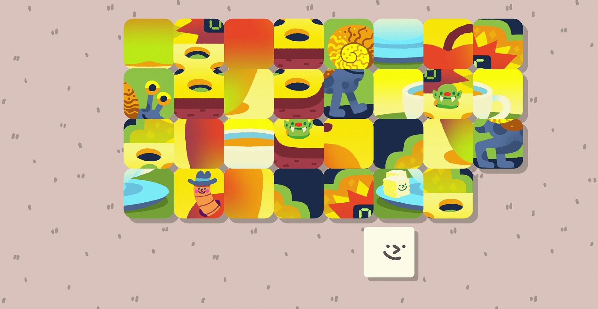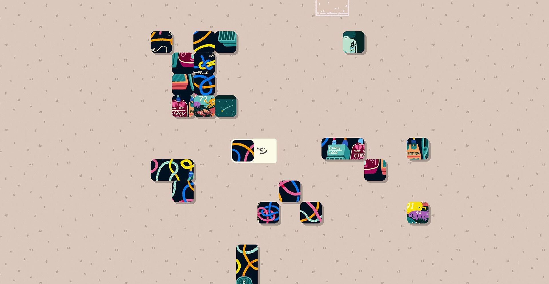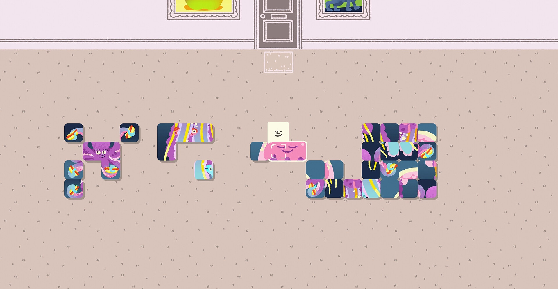 Уилмот очень любит отдыхать во время разбора склада и сортировки различных частей пазла. Так, например, вчера был пазл в виде змеи в шляпе, но сегодня он выглядит таким образом, будто он похож на осьминога? А может быть этом и вовсе гамбургер? После того как головоломка будет закончена, решите куда ее повесить.
