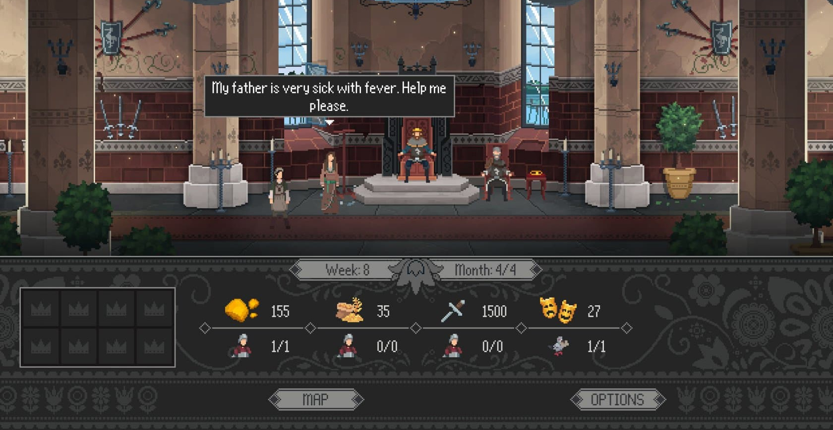 - выслушивайте жалобы и просьбы поданных каждый ход, принимая решения, достойные короля;