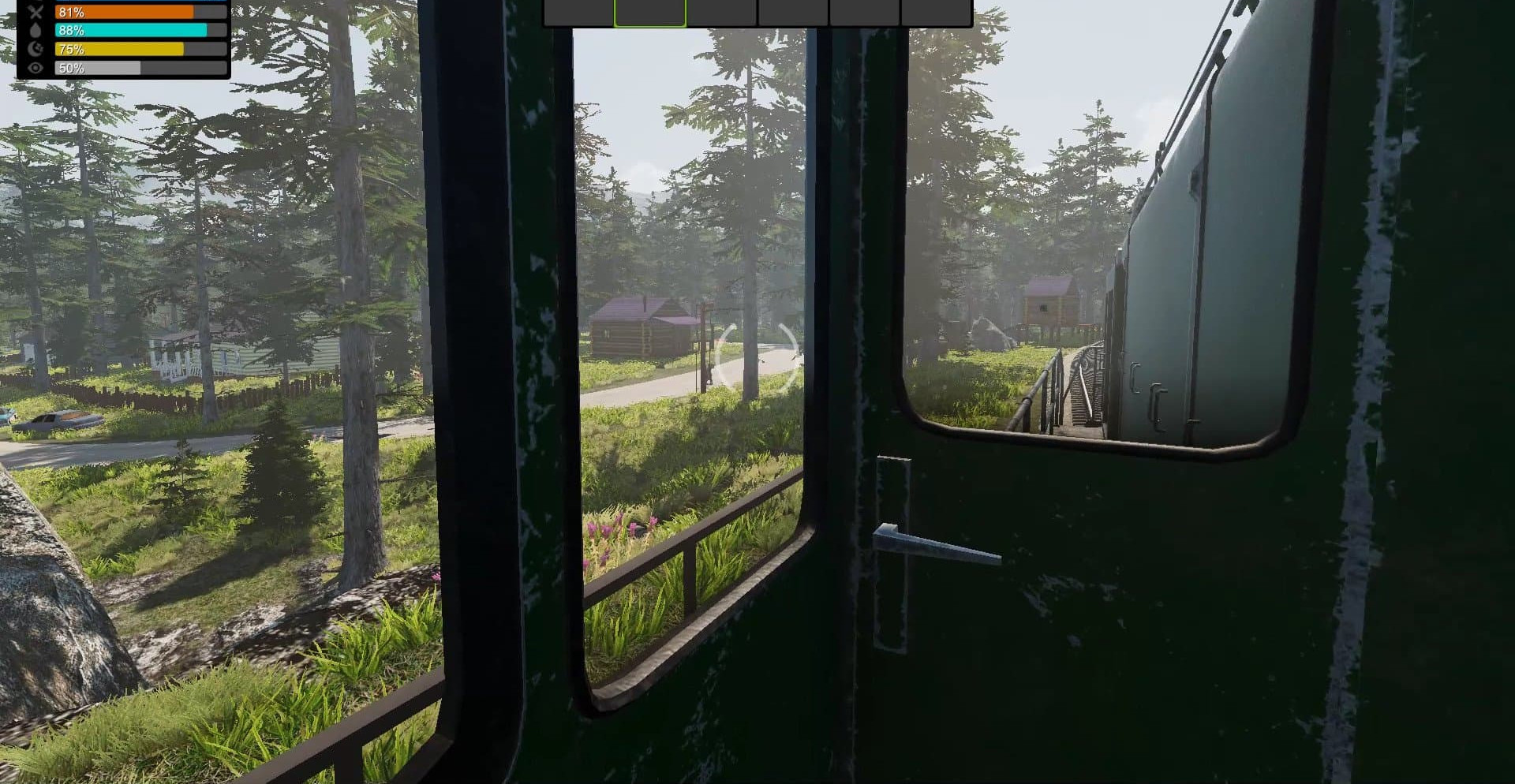 Одна часть поезда отвечает за передвижение, а вторая (вагон) — за все остальное. В вагоне вы можете улучшать свое жилище, приносить туда новые предметы, отдыхать, создавать вещи, восстанавливать здоровье. Снаружи поезд тоже можно укреплять металлоломом, шипами, острыми копьями и так далее.